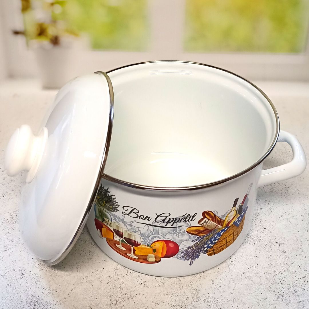 Кастрюля эмаль 3,0л Пикник С-1612АП2/4 изготовлена из высококачественной стали с эмалированным покрытием. Эмалевое покрытие, являясь стекольной массой, не вызывает аллергию и надежно защищает пищу от контакта с металлом. Кроме того, такое покрытие долговечно, оно устойчиво к механическому воздействию, не царапается и не "сходит", а стальная основа практически не подвержена механической деформации, благодаря чему срок эксплуатации увеличивается. Стальная крышка с эмалированным покрытием оснащена пластиковой ручкой. Крышка плотно прилегает к краю, сохраняя аромат блюд.