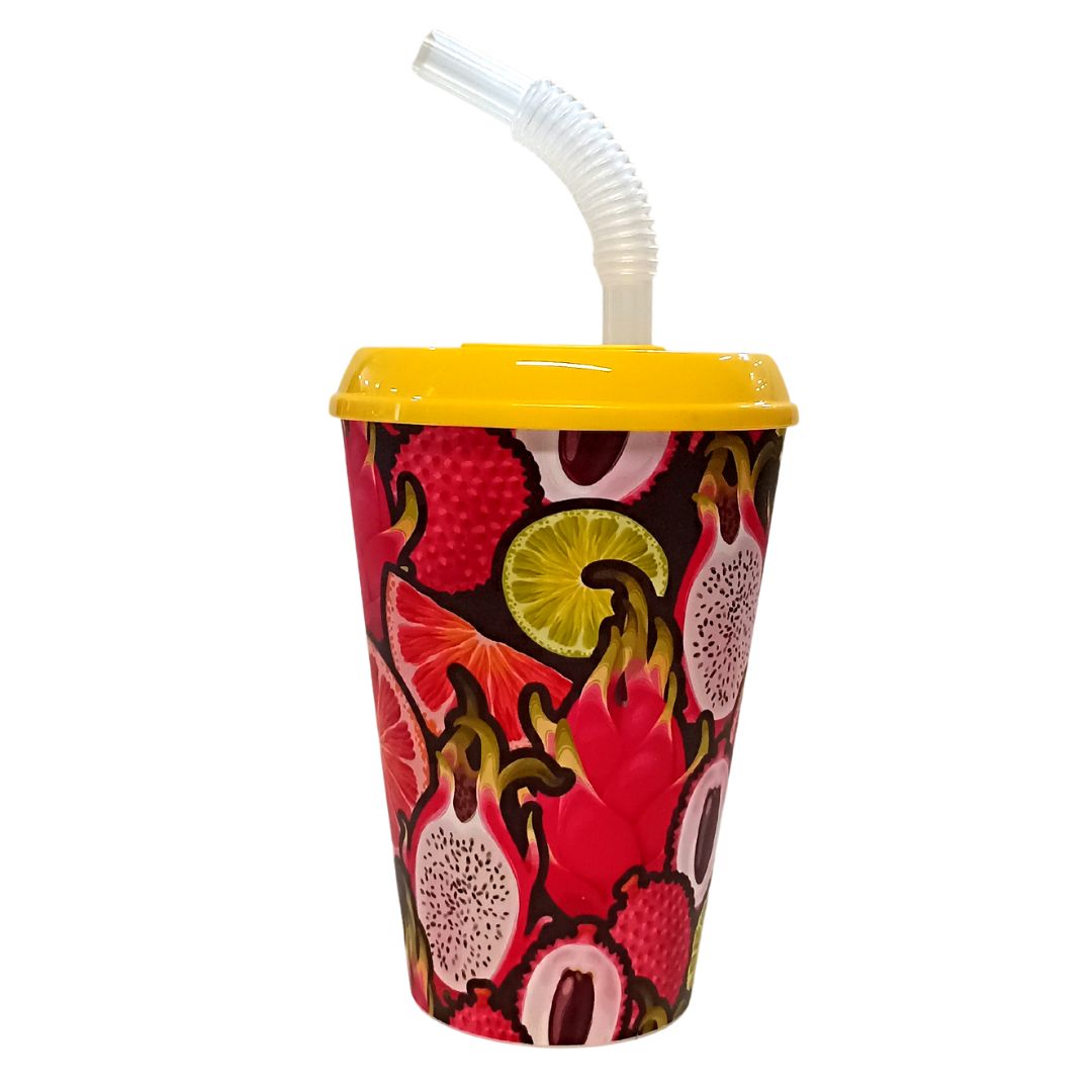 Стакан "IZI-GO" с крышкой 420мл с декором (желтый) 222100503/01