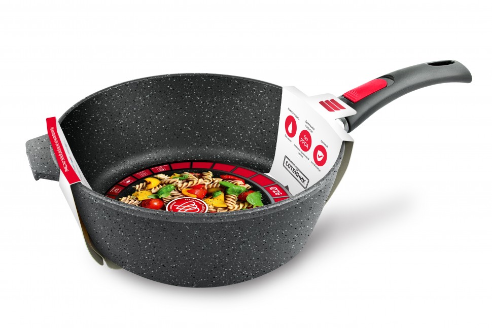 Серия сковород «Литая» является классикой: безупречно подходит для ежедневного использования, создана из материалов высшего класса безопасности на новейшем оборудовании. Литой алюминиевый корпус сотейника не подвержен деформации и обеспечивает равномерный нагрев.