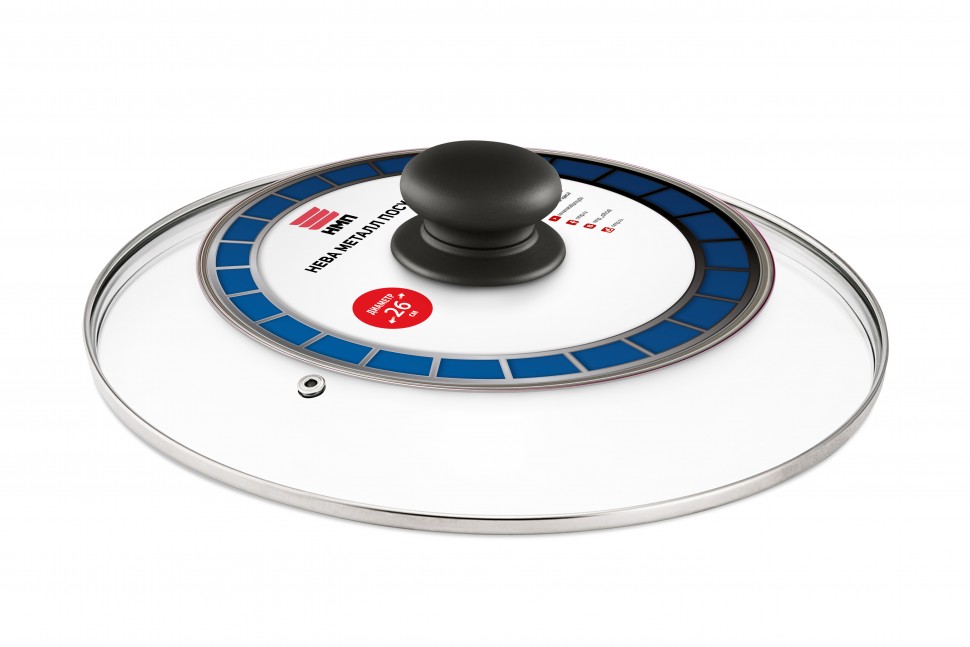 Крышка изготовлена из жаростойкого стекла с ободом и пароотводом из высококачественной нержавеющей стали.