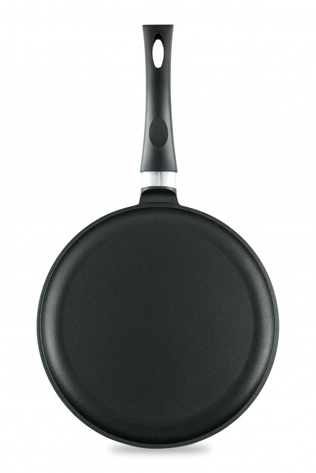 Серия сковород «Литая» является классикой: безупречно подходит для ежедневного использования, создана из материалов высшего класса безопасности на новейшем оборудовании. Многослойное высококачественное антипригарное покрытие позволяет готовить без масла или с минимальным количеством масла и сохранять натуральный вкус продуктов. Безопасное антипригарное покрытие изготовлено на водно-кремниевой основе, ресурс сковороды более 2000 условных циклов приготовления, антипригарные свойства не теряются даже при внешних механических повреждениях. Ручка не нагревается в процессе приготовления, что обеспечивает максимальный комфорт.Блинная сковорода имеет низкий борт и удобную ручку, благодаря чему легко переворачивать и снимать блины. Утолщенное дно обеспечивает особые термоаккумулирующие свойства. Толщина дна 4мм, толщина бортов 2,7мм. высота бортов 18мм. Можно использовать в посудомоечной машине.