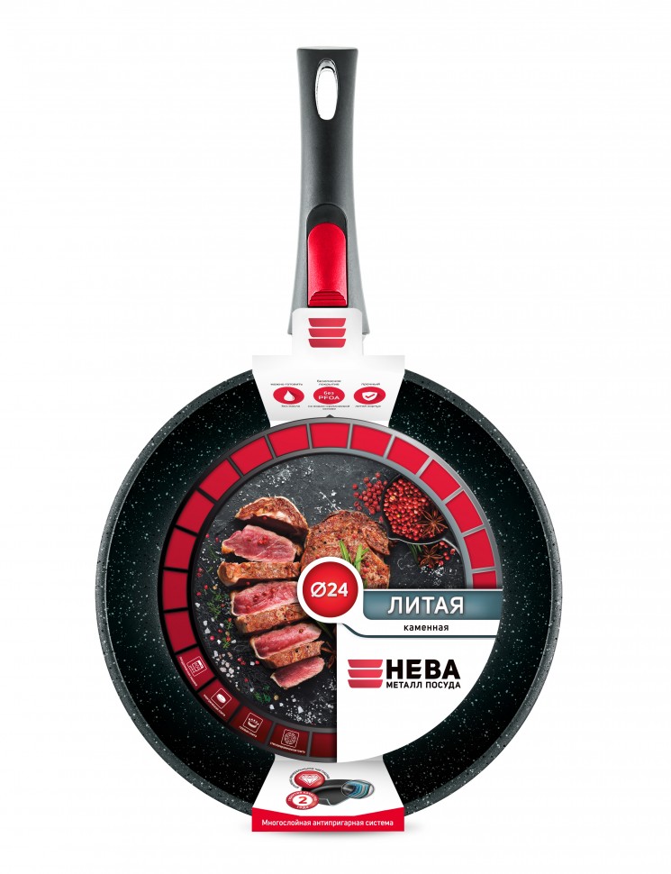 Сковорода 24 "Каменная" Чёрный гранит с/р 18024