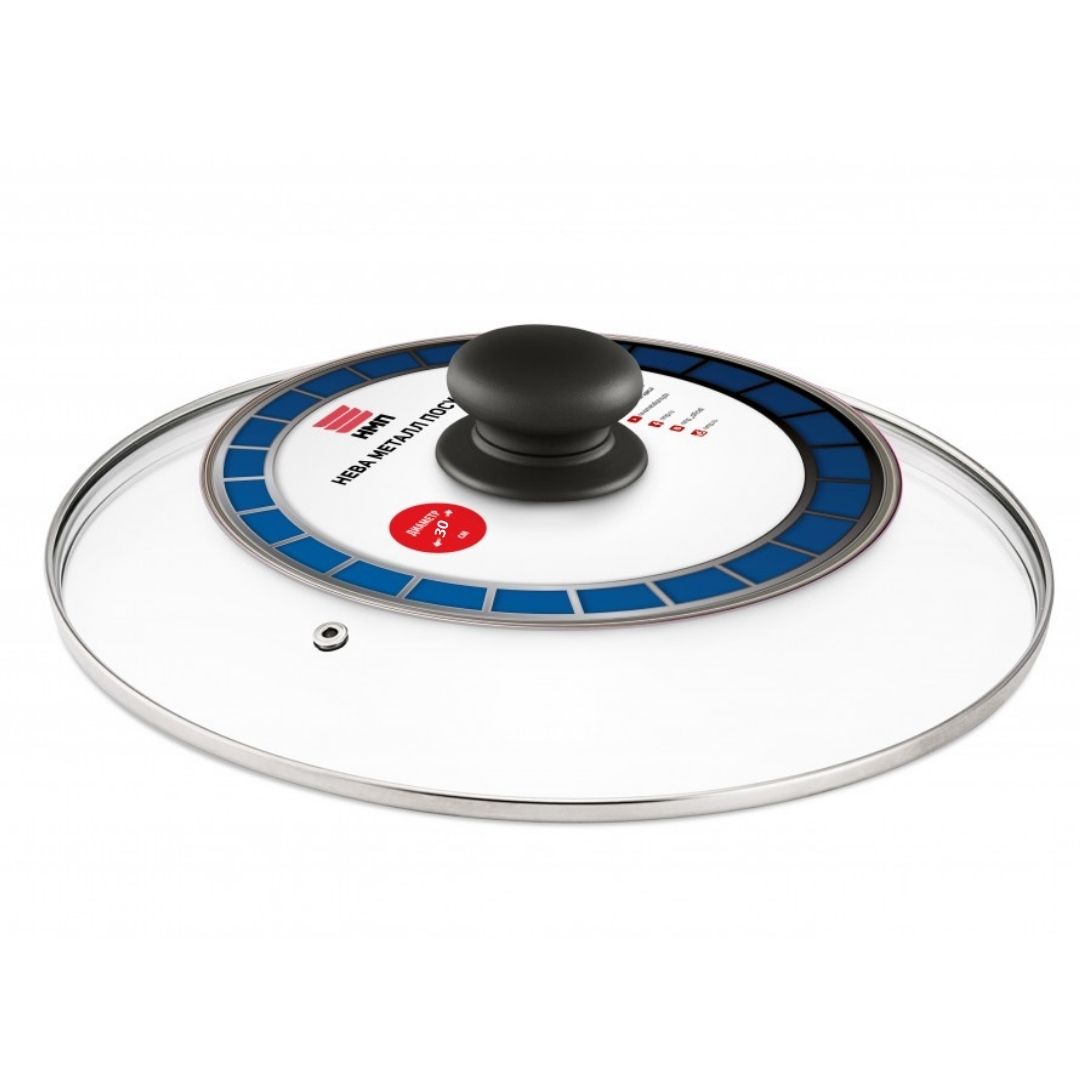 Крышка изготовлена из жаростойкого стекла с ободом и пароотводом из высококачественной нержавеющей стали.