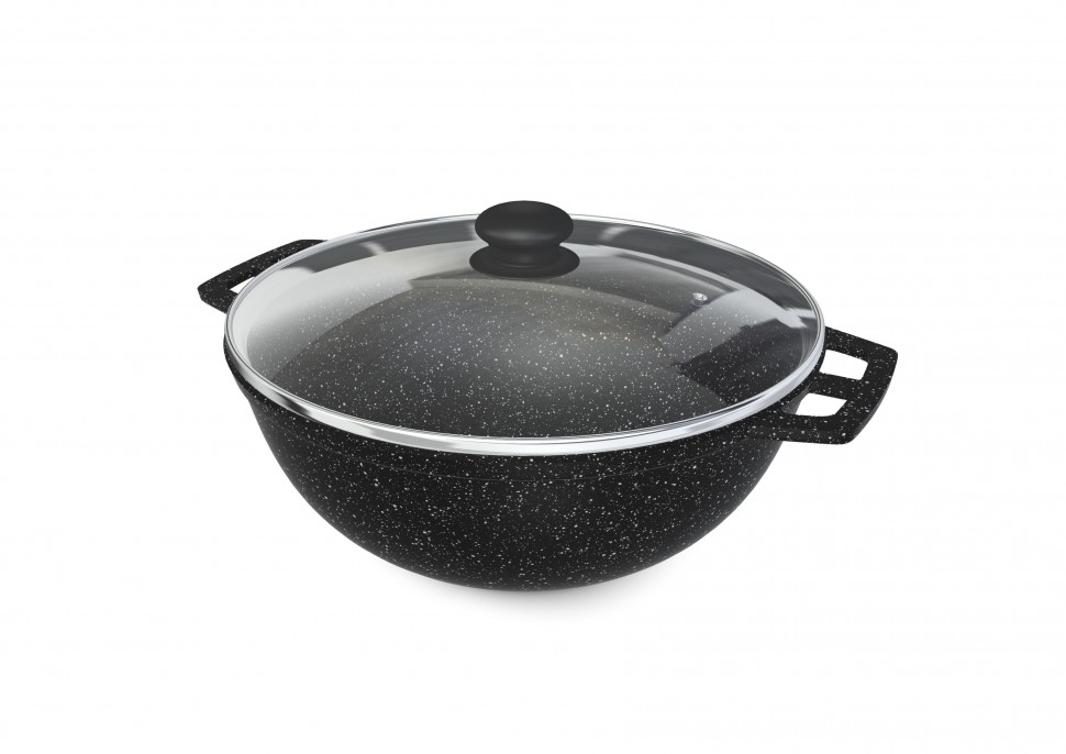 Казан сферический со стекл. крышкой 4,5л "Каменная" Черный гранит 186845сф