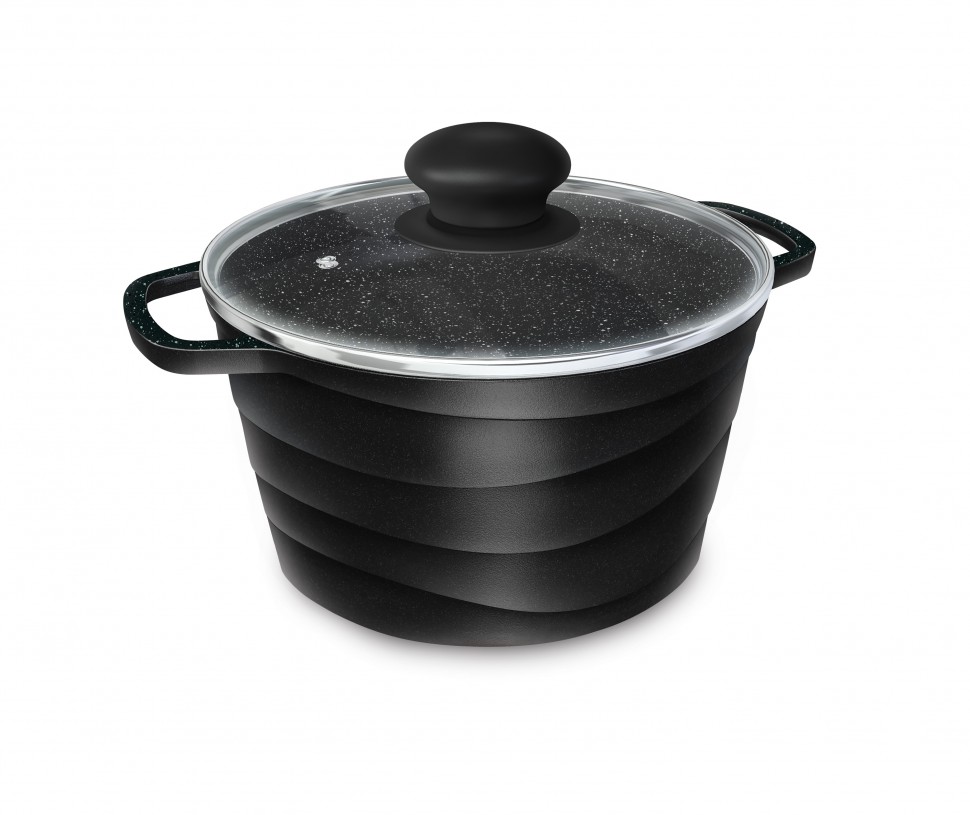 Кастрюля со стекл. крышкой 1,5л "Каменная" Черный гранит 186615