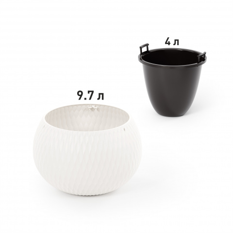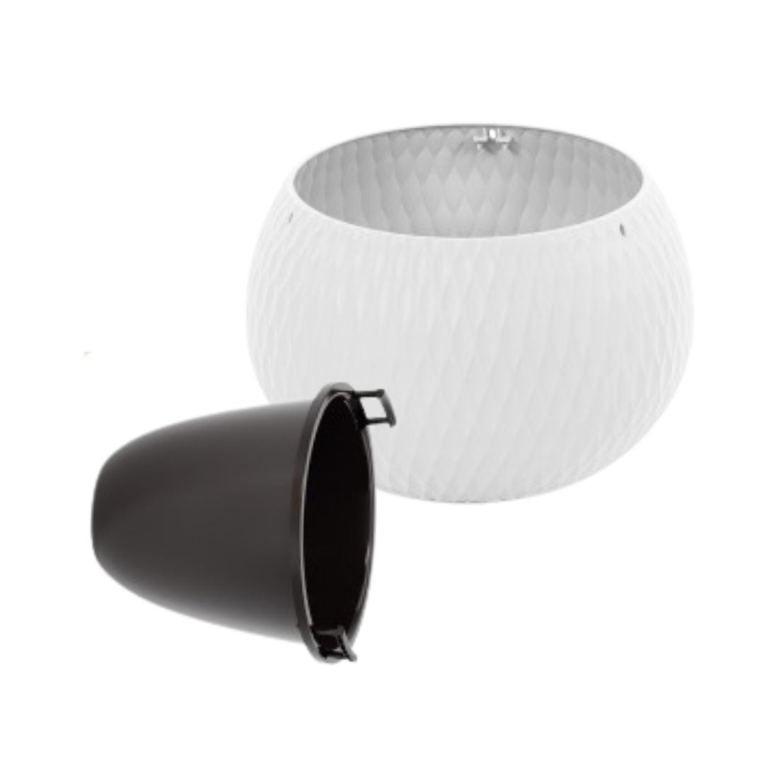 Кашпо «Жемчужина» предназначено для выращивания комнатных и уличных растений. Оно имеет два варианта использования: стоя на полу или подоконнике и в комплектации с подвесным металлическим механизмом, что позволит подвешивать кашпо как дома, так и на садовых участках, расширяя варианты выбора растений от прямых до вьющихся. Кашпо состоит из двух частей. Внутренняя вставка имеет отверстия и предотвращает перелив растений и загнивание корней. Внешняя часть защищает кашпо от протекания, а многогранная поверхность придает визуальную легкость и особенную эстетику изделию. Благодаря необычной сферической форме оно станет украшением любого интерьера.