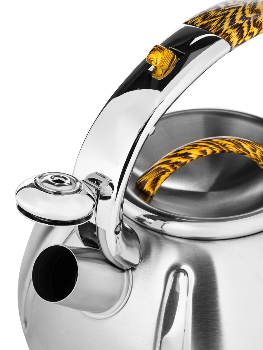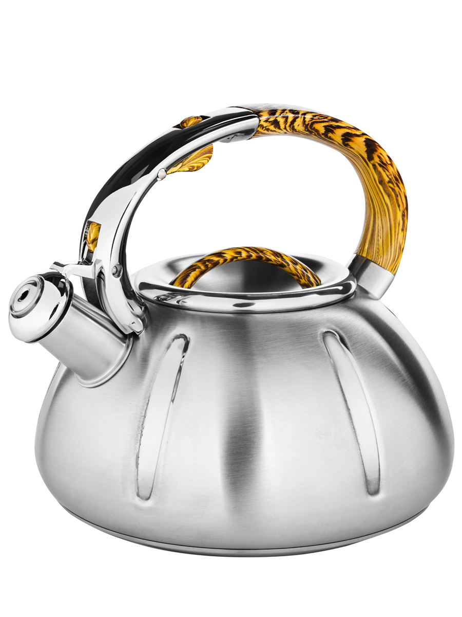 Чайник изготовлен из прочной нержавеющей стали и оснащен ручкой, которая не нагревается во время использования. Прочные стенки толщиной 0,6 мм обеспечат долговечность, а стильное матовое покрытие позволит чайнику вписаться в любой кухонный интерьер.