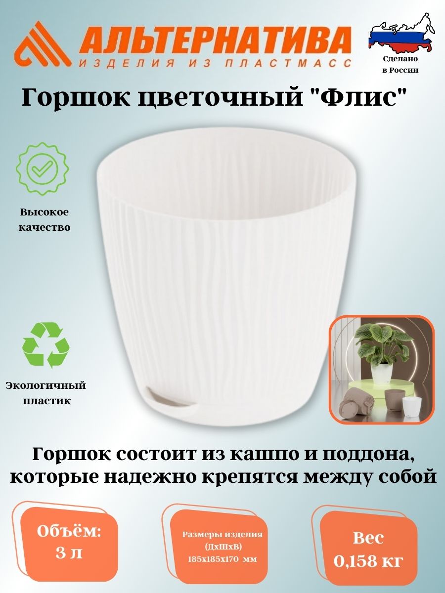 Горшок цв. "Флис" с прикорневым поливом 3л (белый) М8443