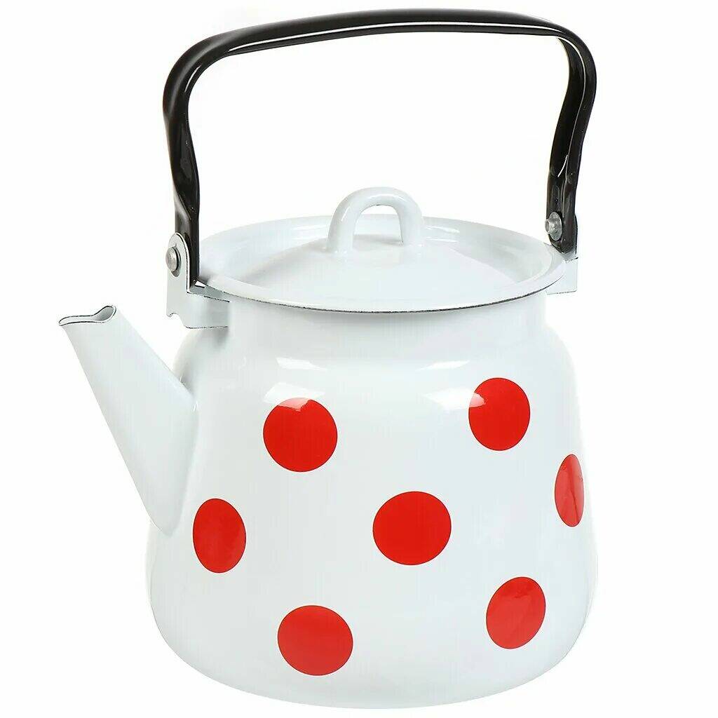 Чайник для плиты 3,5 л сфер Красный горох С2716*79 белый с петлей