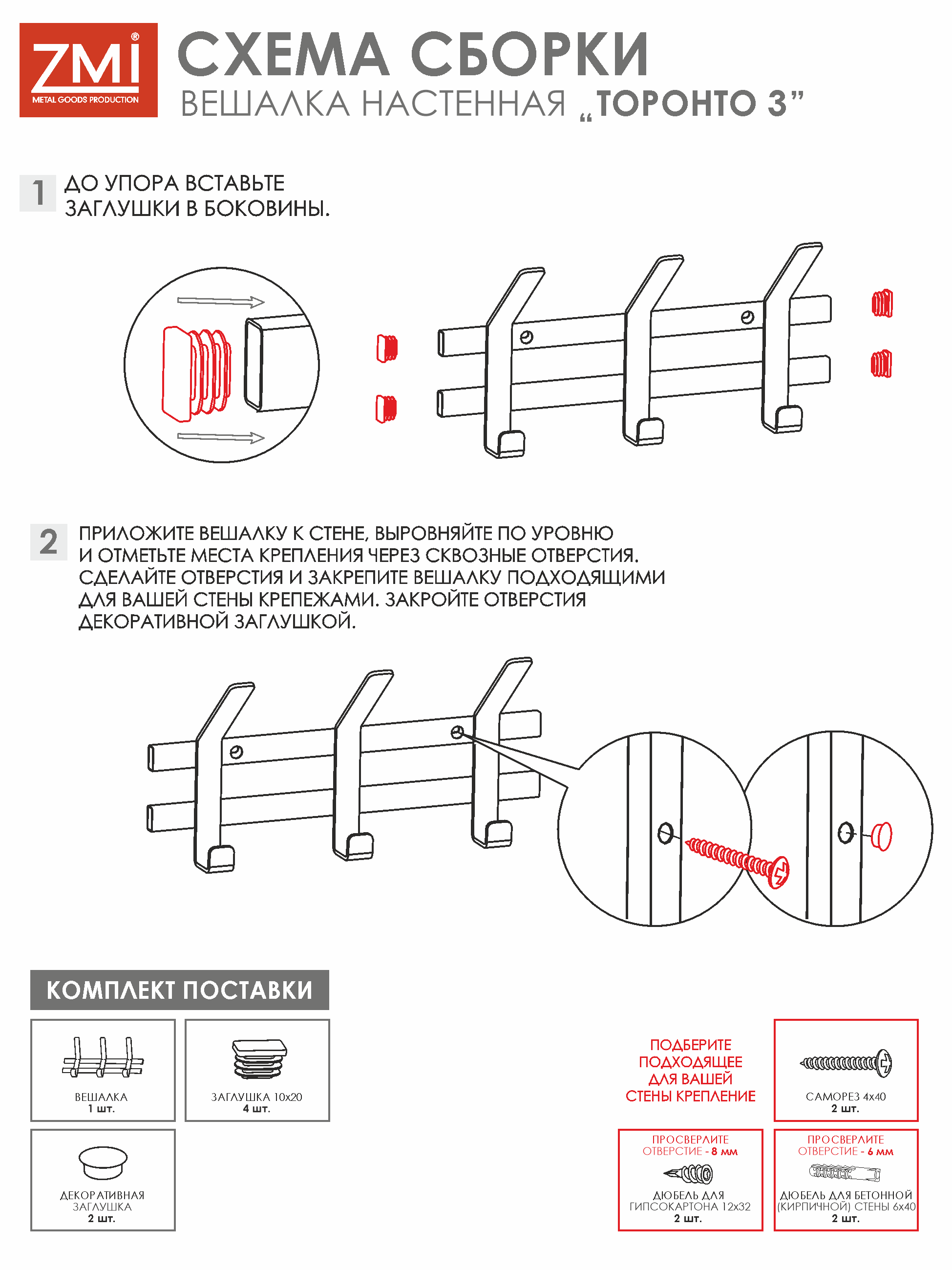 Она выполнена из прочной металлического листа, что гарантирует ее долговечность и надежность. С тремя крючками вы сможете удобно разместить свою верхнюю одежду, полотенца, сумки и другие вещи, освободив таким образом ценное пространство в вашей комнате.