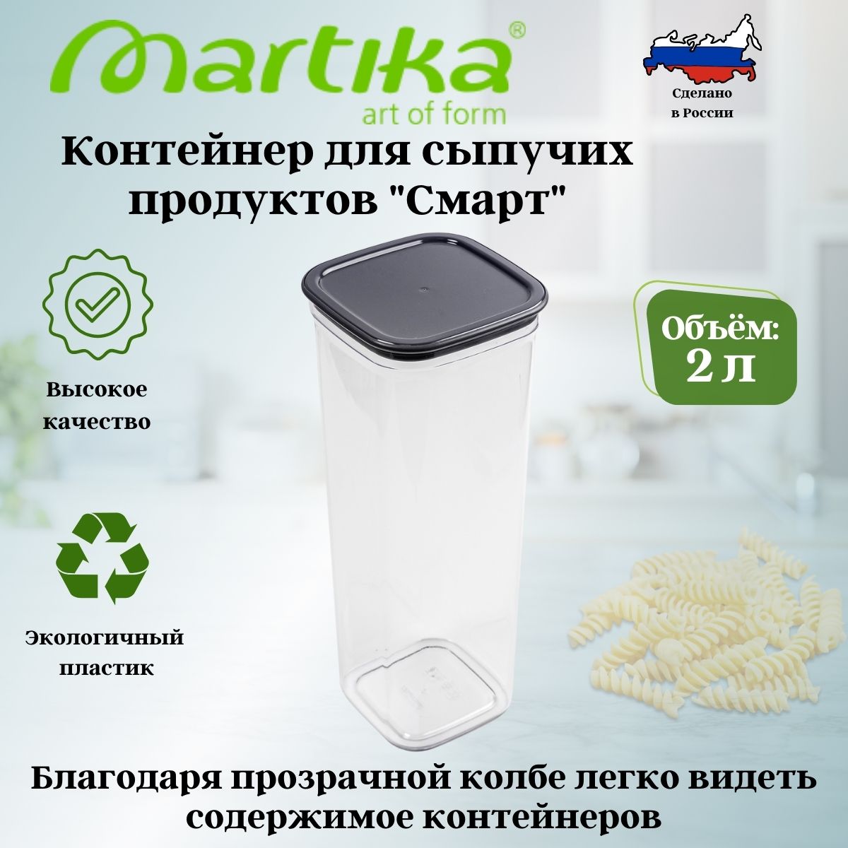 Линейка контейнеров для сыпучих «СМАРТ» - это универсальный набор для вашей кухни. Контейнер 2 л с легкостью вместит несколько упаковок спагетти. Благодаря прозрачной колбе легко видеть содержимое контейнеров. Плотная посадка крышки исключает случайное просыпание, не пропускает запахи и сохраняет свежесть продуктов. Продуманное штабелирование контейнеров «Смарт» позволяет компактно и эффективно организовать пространство для хранения на кухонных полках или в ящиках.