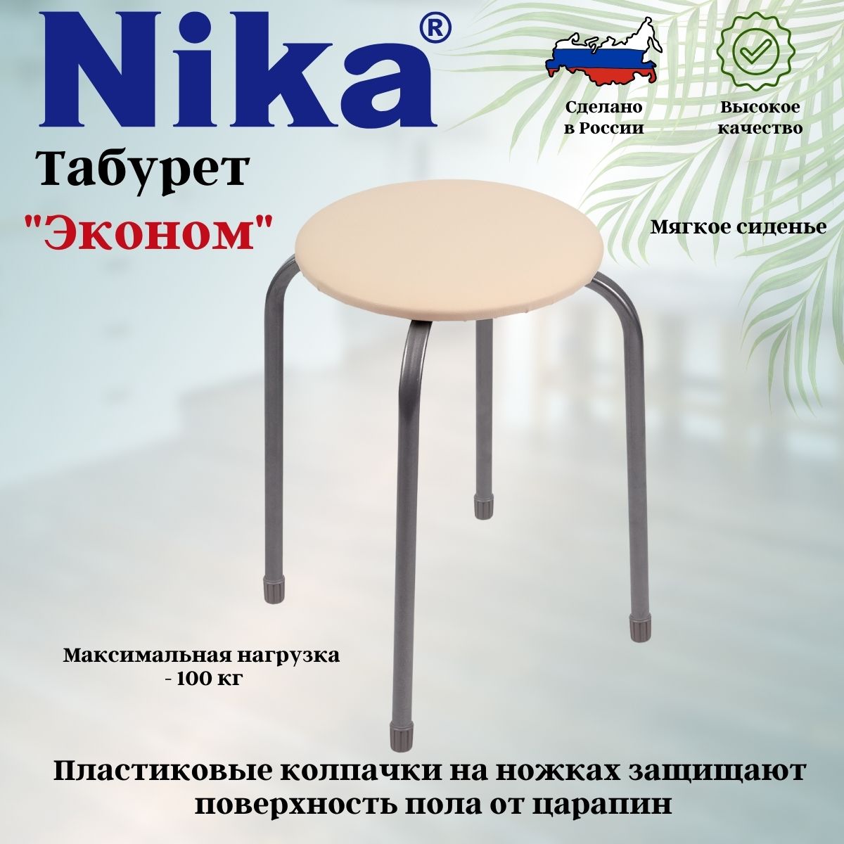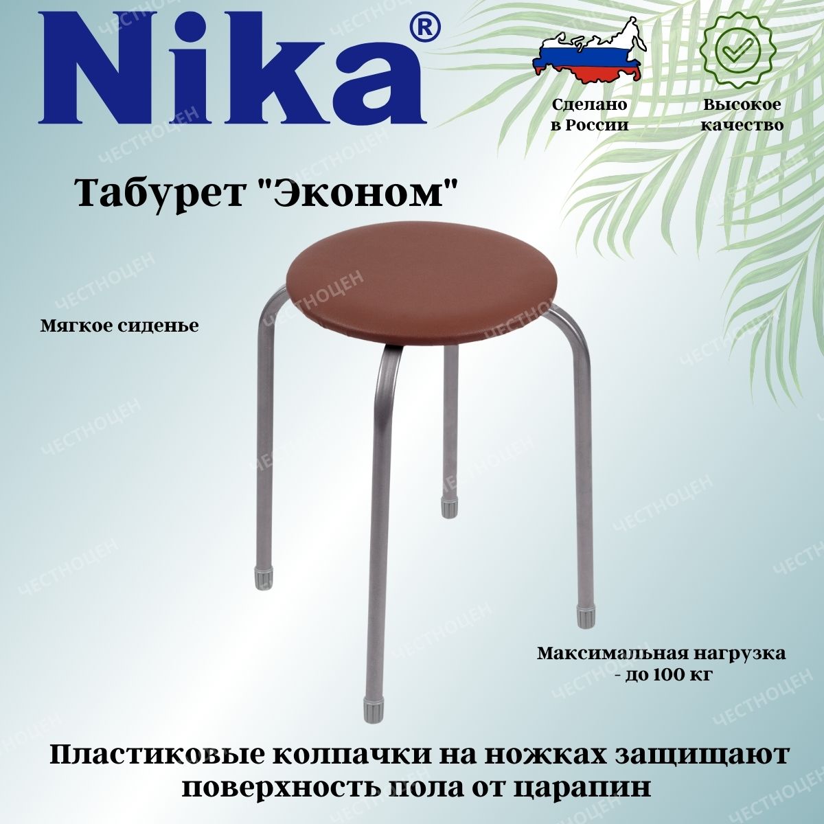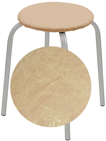 Табурет на четырёх опорах с мягким сиденьем из винилискожи. Материал сиденья устойчивый к истиранию и лёгкий в чистке.