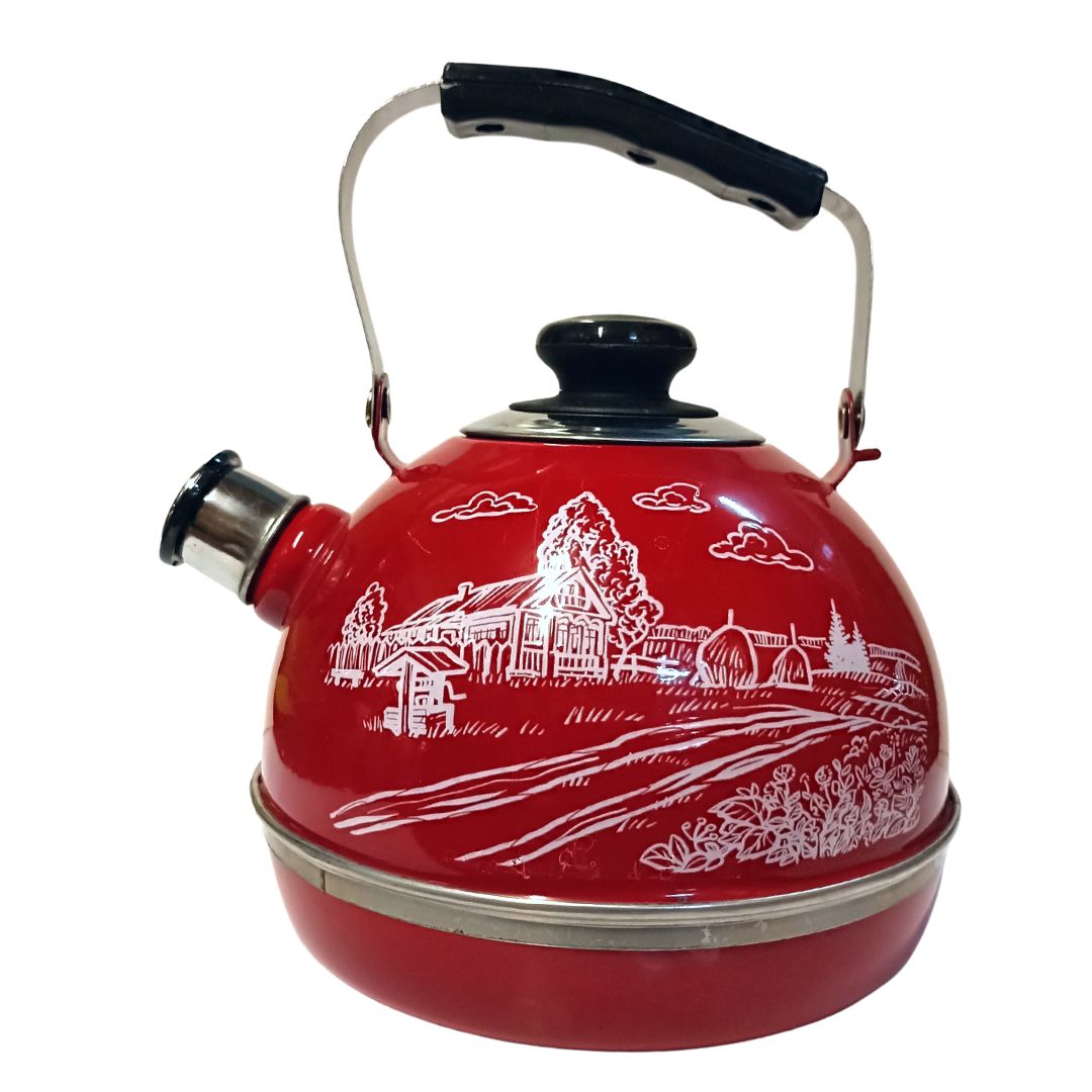 Чайник эмалированный со свистком. Внешнее трехслойное эмалевое покрытие не вступает во взаимодействие с пищевыми продуктами, защищает сталь от коррозии, придает посуде гладкую стекловидную поверхность и надежно защищает от кислот и щелочей. Свисток съемный из нержавеющей стали. Крышка плотно прилегает к краю. Может быть использован на всех типах кухонных плит: электрических, газовых, керамических, индукционных. Подходит для мытья в посудомоечной машине