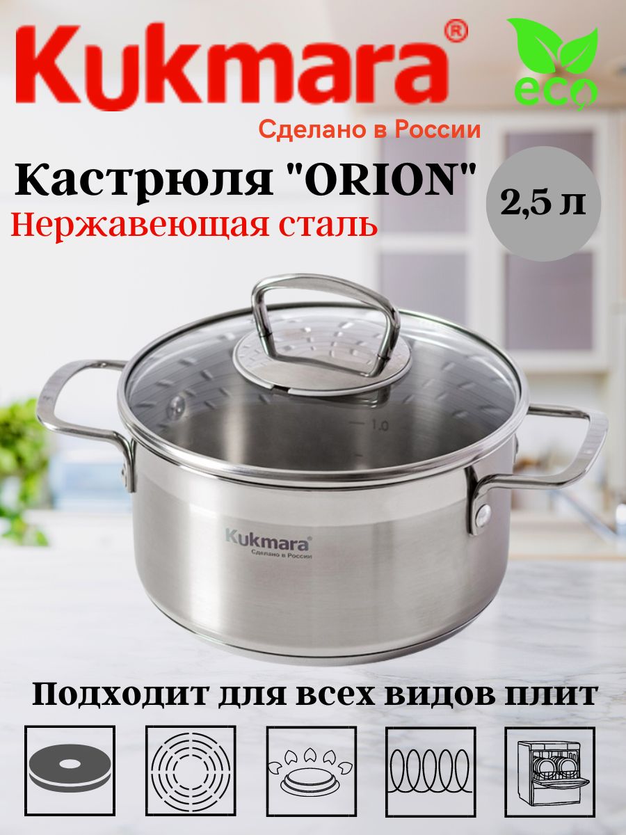 Кастрюля линии "ORION" 2,5 литра, диаметром 18 см, со стеклянной крышкой ORN-CA2518G