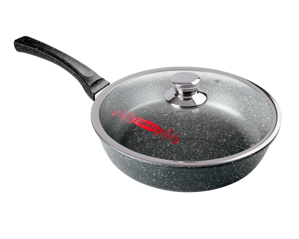 Литая алюминиевая сковорода с антипригарным покрытием – оригинальная посуда ТМ Горница, которая подходит для газовых, электрических, стеклокерамических плит. Коллекция «мраморной посуды» с улучшенным четырёхслойным антипригарным покрытием. Дополнительный слой с мраморным эффектом увеличивает износостойкость и создаёт оттенок чёрного мрамора. Сковорода литая изготовлена из пищевого алюминия без канцерогенных веществ. Антипригарная сковорода имеет толстые стенки и утолщенное дно, что способствует равномерному распределению тепла и создает благоприятные условия для качественного процесса готовки. Антипригарное покрытие на водной основе не содержит вредных химических соединений. Сковорода со съёмной ручкой применяется в духовом шкафу. Ручка для сковороды из бакелита не нагревается и не выскальзывает из рук.