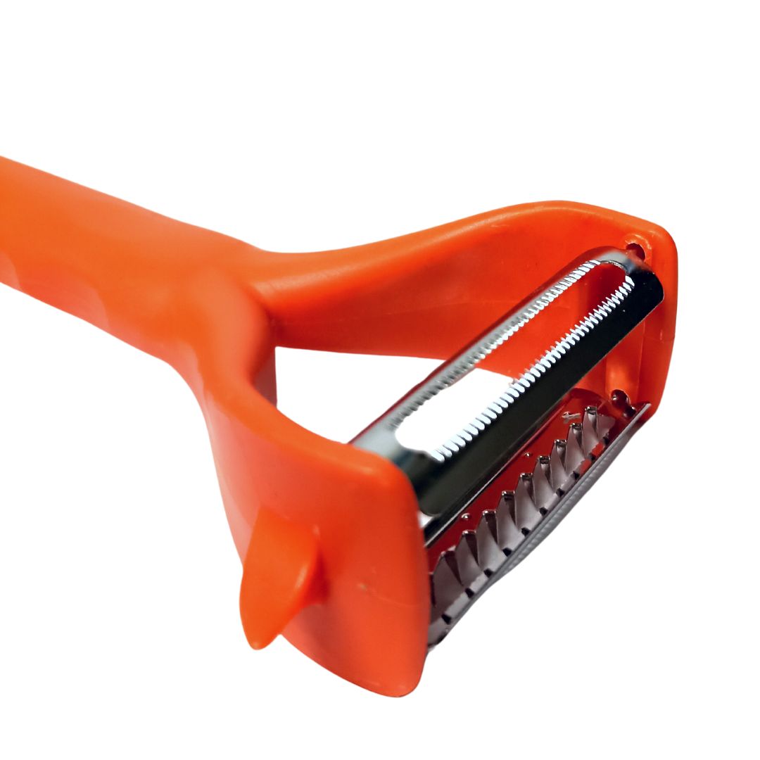 Овощечистка с открывалкой применяется для очистки овощей и фруктов от кожуры, а также открывания бутылок. Конструкция ножа задает необходимую глубину счищаемого слоя и сведет к минимуму отходы, оставляя все самое ценное и питательное в ваших овощах и фруктах.Помимо очистки овощей и фруктов, Вы можете использовать ее как инструмент для карвинга и удаления "глазков", для этого воспользуйтесь боковой стороной овощечистки. В овощечистку встроены открывалка для бутылок, с помощью которых, при необходимости, Вы сможете открывать бутылки с металлическими крышками. После использования необходимо промыть овощечистку под проточной водой, можно с использованием жидких моющих средств. Хранить в сухом месте.Изготовлено: режущее лезвие из коррозионностойкой (нержавеющей) стали, ручка из пластмассы (полипропилен).
