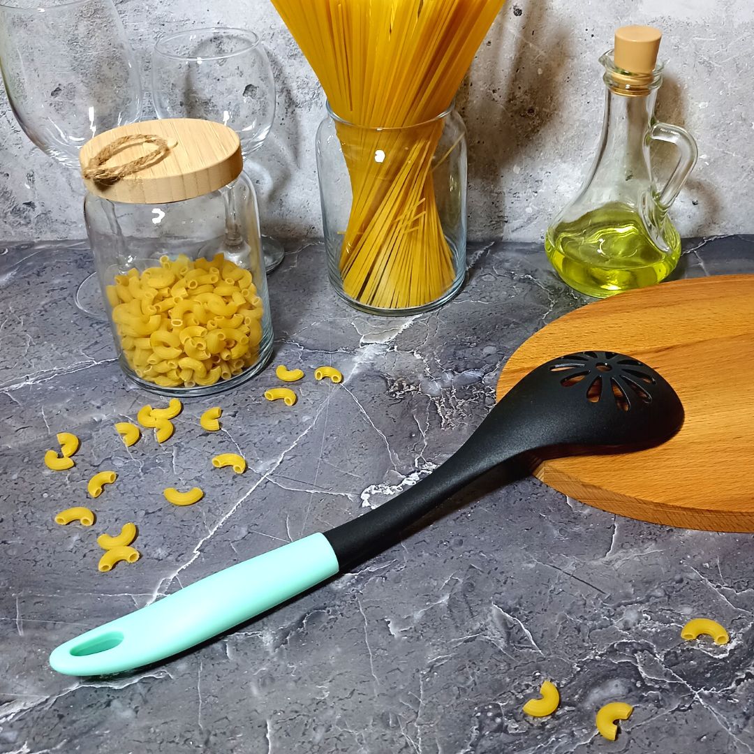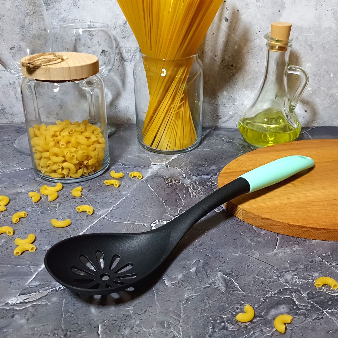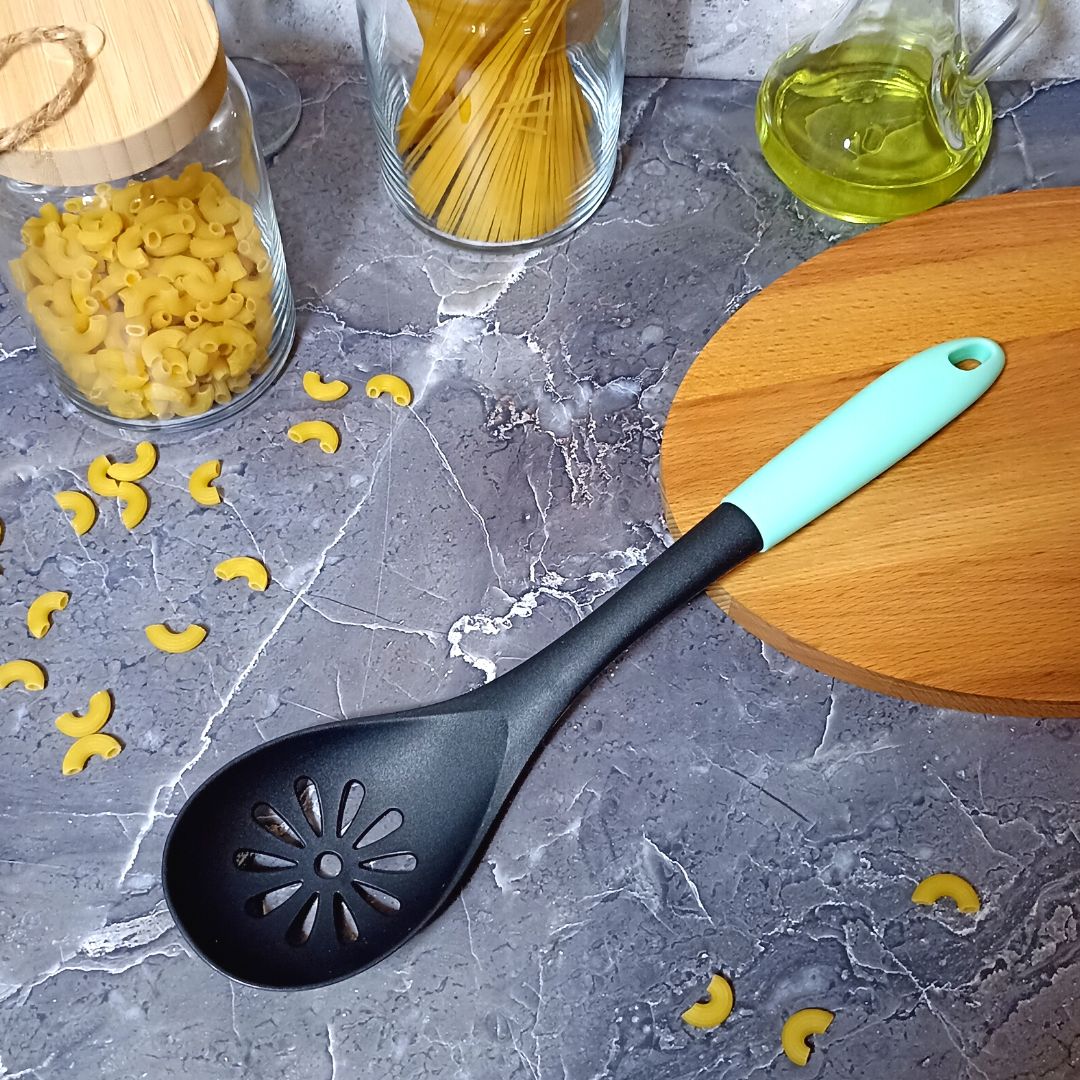 Ложка с прорезями из нейлона – идеальный выбор для вашей кухни. Эта кухонная ложка найдёт применение в каждом доме, поскольку она создана специально для удобного и быстрого приготовления пищи.