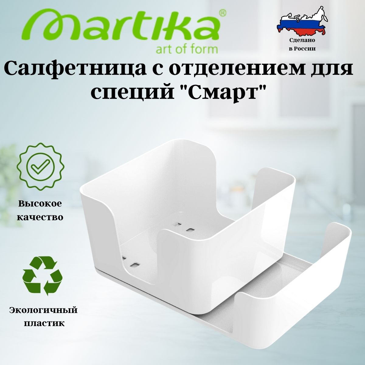 Салфетница с отделением для специй «Смарт» - это баланс функциональности и стиля. Изделие предназначено не только для хранения салфеток, но и для удобного размещения емкостей со специями на вашем обеденном столе.