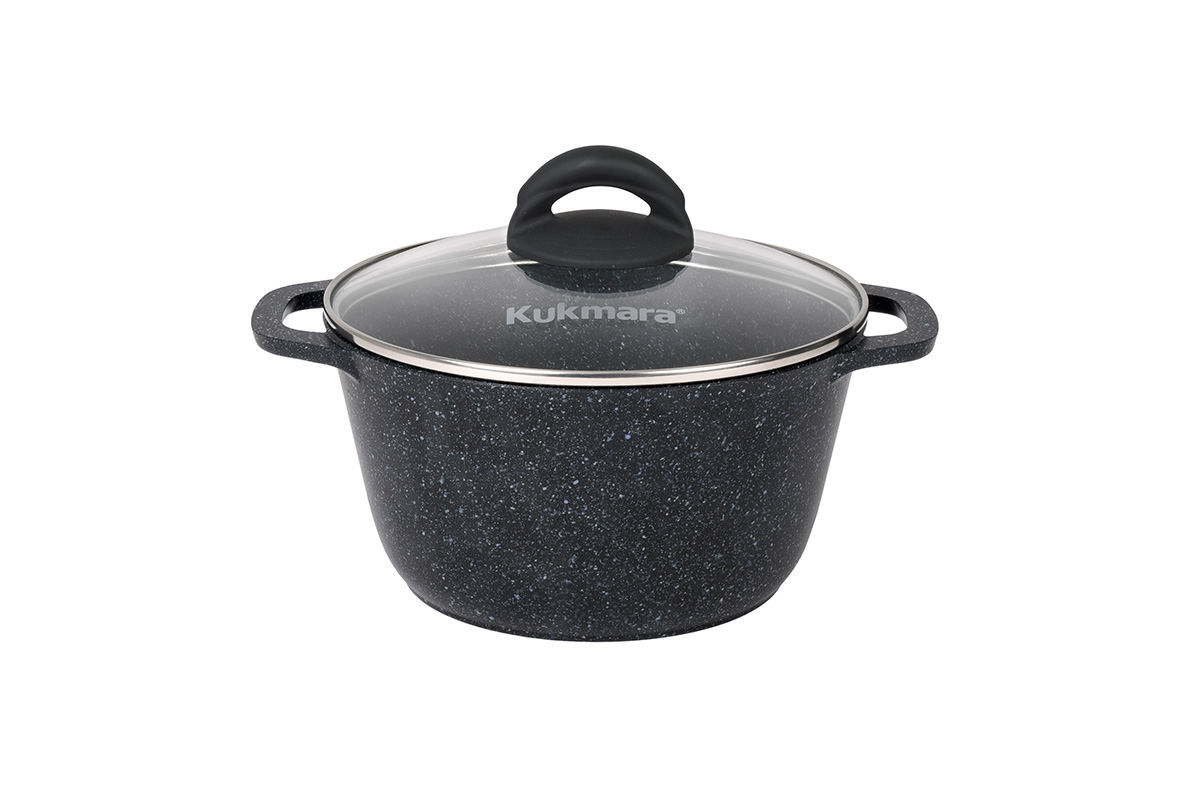 Кастрюля Kukmara Кукмара 2,5л со стеклянной крышкой АП GRANIT black кгч25а - надежная и удобная посуда для приготовления пищи.