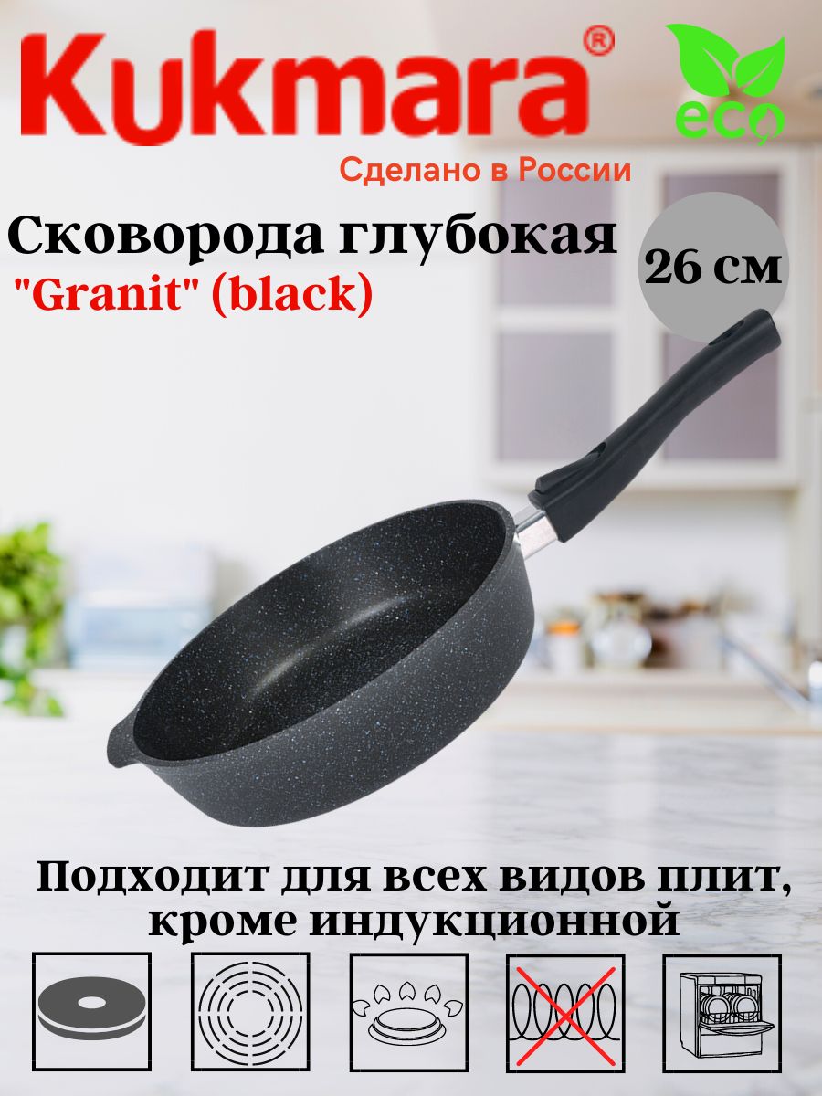Сковорода глубокая 260мм со съемной ручкой,АП линия "Granit" (black) сггч262а