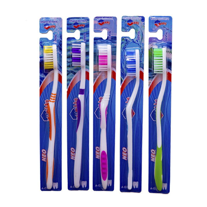 Зубные щетки серии «А» производятся с разными форматами ручек, и с разными щетинами средней жесткости, которые между собой отличаются формой и густотой.