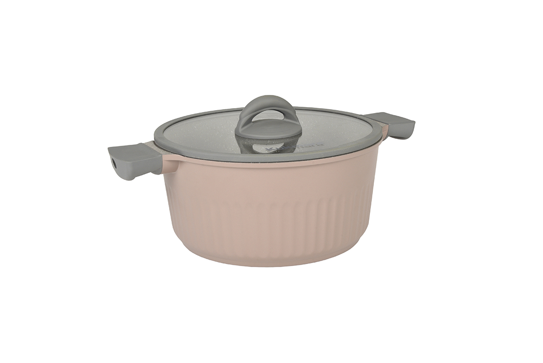 Новый продукт - линия «Stella» изготавливается на вновь установленном, автоматическом литейном оборудовании, которое позволяет получить качественные заготовки посуды из алюминия с более сложными формами. Новая коллекция элегантной и надежной посуды «Stella» создана для тех, кто ценит качество и стиль на кухне. Каждый предмет посуды данной линейки является воплощением высокого качества и инновационного дизайна. Узор на внешних прямых бортах посуды образует ряд замкнутых колонн. Стильный дизайн – не единственное преимущество коллекции. В новом продукте используется инновационное 6-ти слойное антипригарное покрытие турецкого производства Kaplon Classic 2 plus серого цвета с вкраплениями черного и белого цветов. Оно позволяет готовить с небольшим количеством масла и выдерживает до 15 000 циклов приготовления благодаря своей износоустойчивости. Можно использовать неострые металлические аксессуары без какого-либо ущерба для покрытия. На наружную поверхность посуды нанесено декоративное термостойкое покрытие цвета .