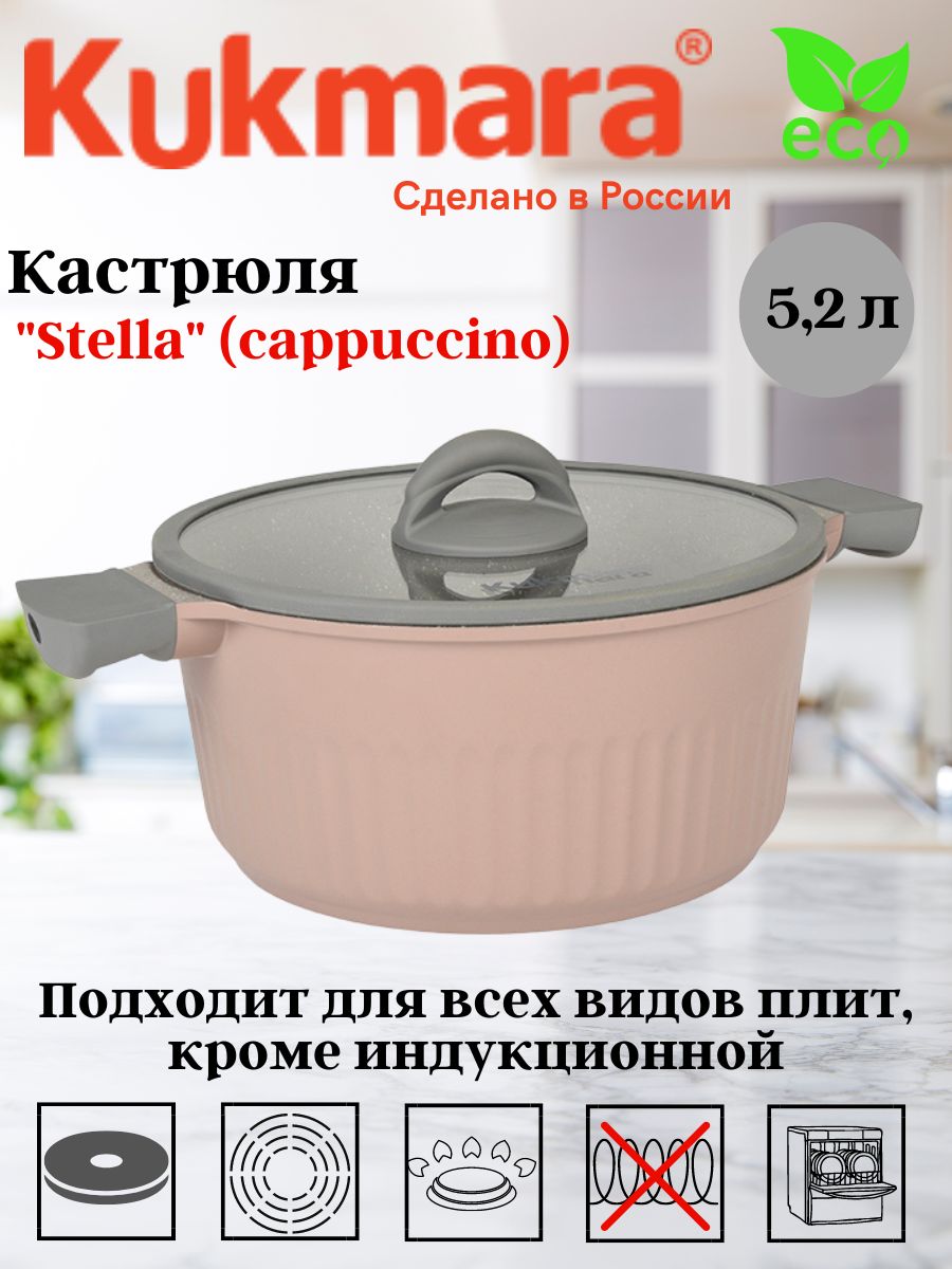 Кастрюля 5,2л со стеклянной крышкой, АП линия "Stella" (cappuccino) кск52а