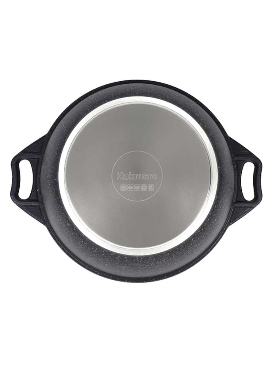 Ультрапрочное многослойное антипригарное покрытие ultra granit позволяет использовать даже неострые металлические предметы. Такое покрытие, усиленное сверхтвердыми минералами близкими по твердости к алмазу, гарантирует долгий срок службы даже при ежедневном использовании, при этом абсолютно безопасно для здоровья, без PFOA. Покрытие не требует особенного ухода, легко моется вручную. Цветовые решения коллекции Granit ultra подойдут к любому интерьеру кухни. Кастрюля Kukmara с гранитным покрытием имеет ровное проточенное дно, которое обеспечивает максимальное прилегание дна посуды к плите для более быстрого и равномерного нагрева.