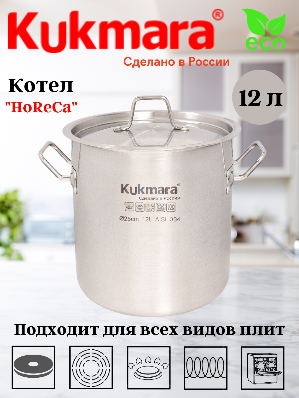 Кастрюля Котел Kukmara Кукмара нержавеющая объемом 12 литров с металлической крышкой диаметром 25 сантиметров предназначена для использования в HoReCa секторе. Это идеальное решение для общепита, столовых, детских садов, школ, садиков и других заведений общественного питания.
