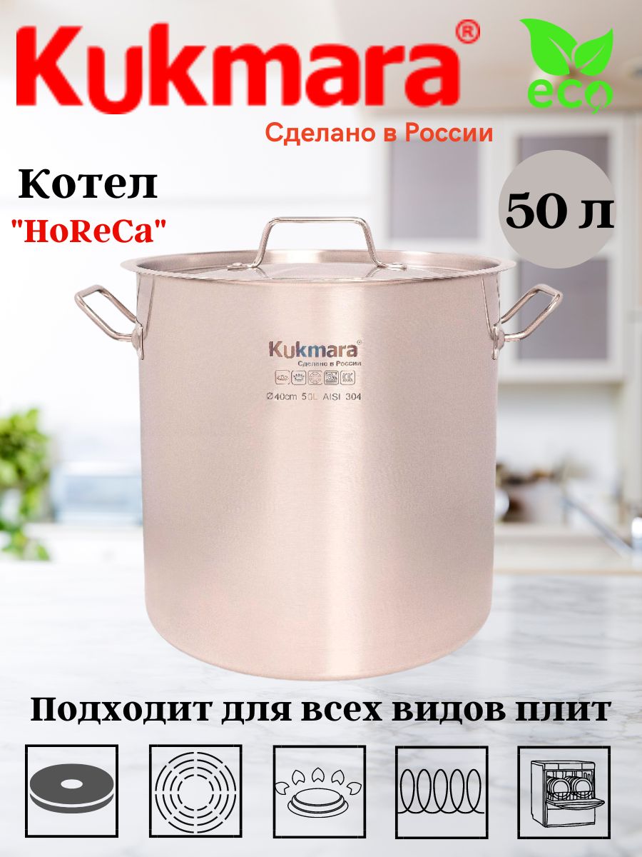 Котел Kukmara линии "HoReCa" 50 литров, диаметром 40см, с металлической крышкой HRC-SP50040M