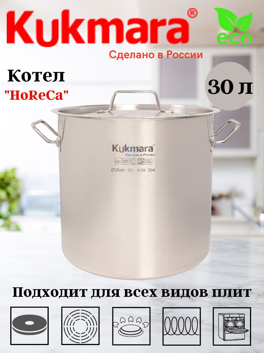 Котел Kukmara линии "HoReCa" 30 литров, диаметром 35см, с металлической крышкой HRC-SP30035M
