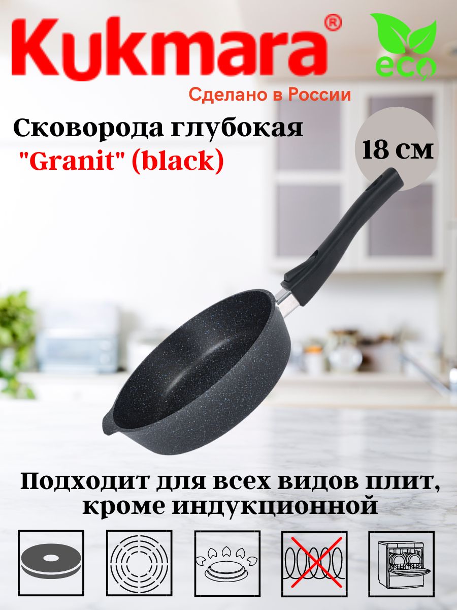 ТМ KUKMARA представляет новинки литой алюминиевой посуды с антипригарным покрытием в линейке «Granit» (black). Это сковорода глубокая диаметром 160мм с несъемной ручкой и сковороды глубокие 180мм, 200мм в комплектации с несъемной и съемной ручками черного цвета. Геометрия корпусов сковород обеспечивает быстрый нагрев и равномерное распределение тепла.