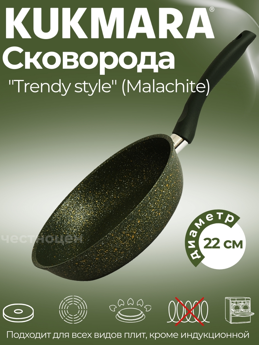 Сковорода 220мм с ручкой, АП линия "Trendy style" ( malachite) 220tsml