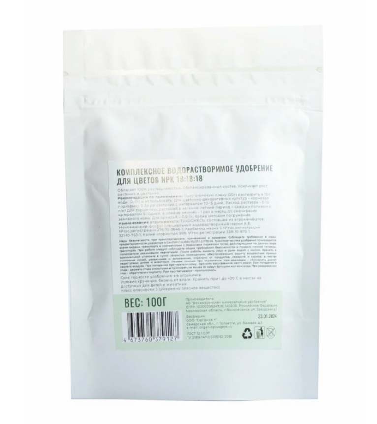 Удобрение для цветов и комнатных растений 0,1кг Водорастворимое Orgamin