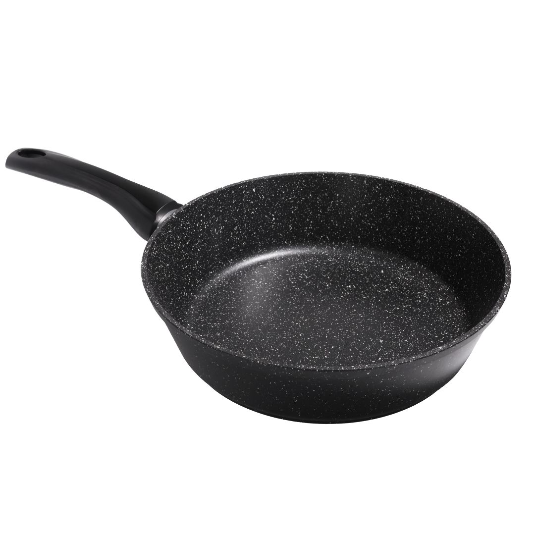 Сковорода оснащена удобной пластиковой ручкой, которая не нагревается в процессе приготовления пищи. Это делает ее использование безопасным и комфортным.