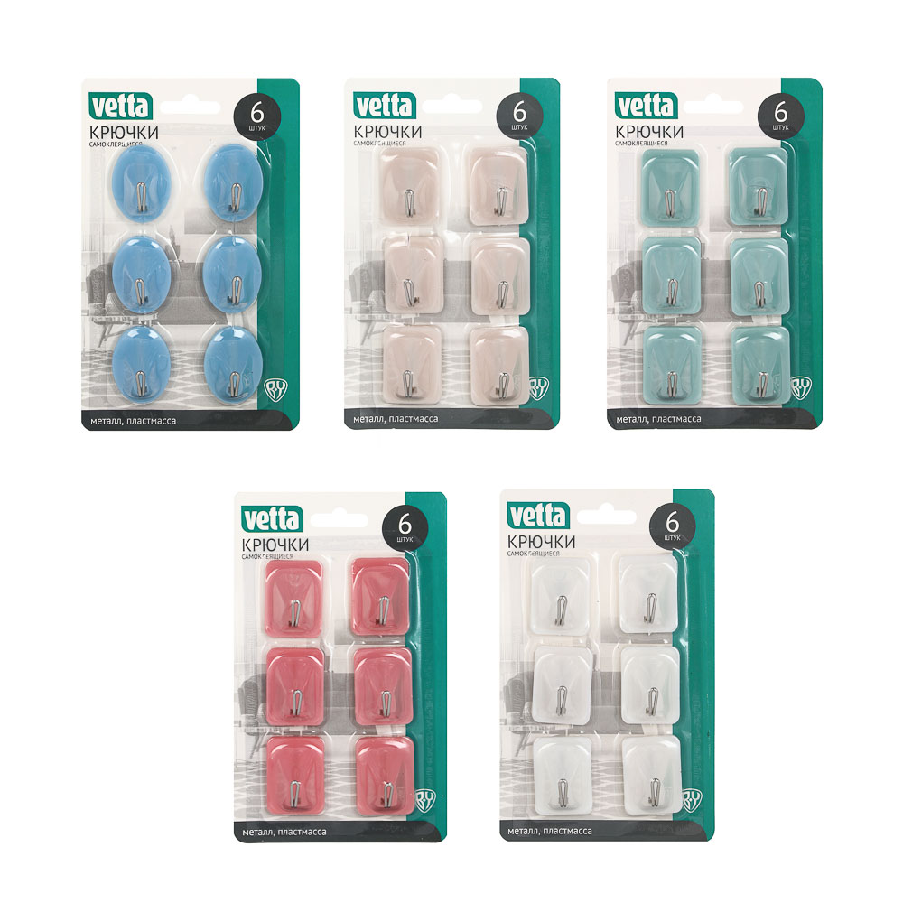 VETTA Крючки самоклеящиеся на блистере, 6шт, 5 цветов, WF-104 440-108