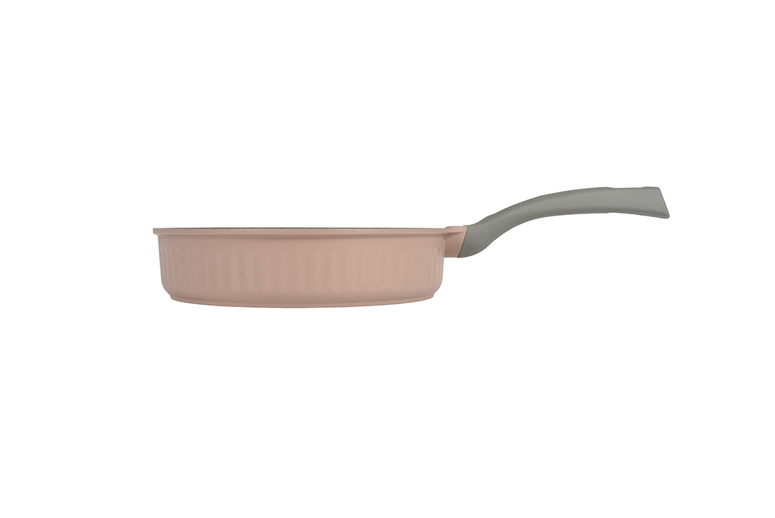 Но дизайн – не единственное преимущество сковороды. В ней имеется прочное шестислойное антипригарное покрытие турецкого производства Kaplon Classic 2 plus серого цвета с вкраплениями черного и белого цветов. Оно позволяет готовить с небольшим количеством масла и выдерживает до 16 000 циклов приготовления благодаря своей износоустойчивости.