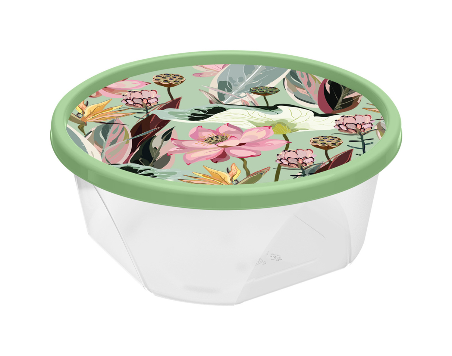 Контейнер для продуктов круглый 0,85л многофункционален: его можно использовать не только для хранения, но и для разогрева, заморозки блюд. Можно использовать для разогрева блюд в СВЧ с приоткрытой крышкой. Разные литражи линейки круглых пищевых контейнеров помогут подобрать оптимальный размер для ваших целей. IML декор на крышке наносится на стадии литья, поэтому не стирается и не выцветает. Изготавливается из перерабатываемого безопасного пищевого полипропилена, не содержит бисфенола А. Температурный режим: от -20 до +75. Изделия с декором не рекомендуется мыть в посудомоечной машине.