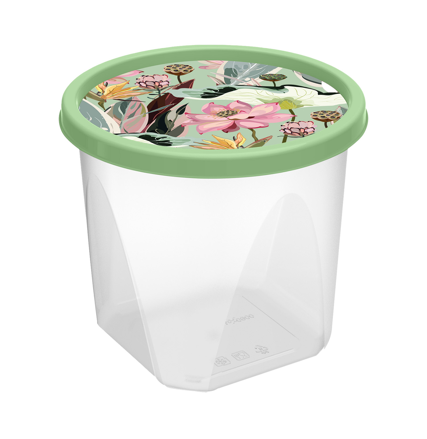 Контейнер для продуктов круглый 1л с декором (зеленый) 222133018/08