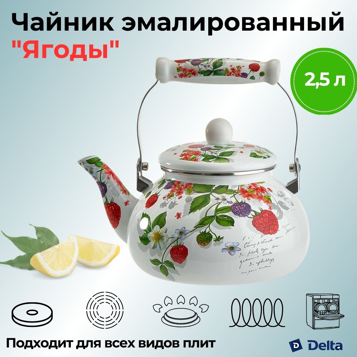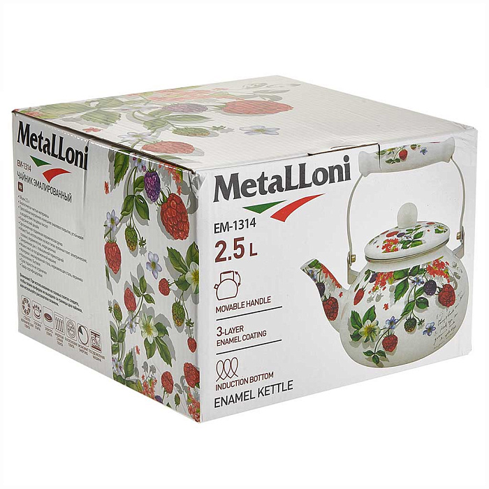 Чайник эмалированный 2,5л с керамической ручкой "Ягоды" EM-1314
