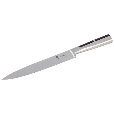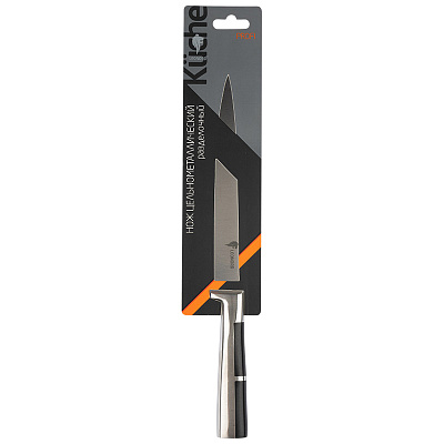 Нож отличается удобством использования и долговечностью. Прочная и удобная эргономичная рукоятка не скользит в ладони при использовании и не впитывает запахи. Cталь отличается высокой износостойкостью и обладает прочной режущей кромкой. Нож успешно справляется с нарезкой колбас и сыров, измельчением фруктов и овощей, разделкой мяса и рыбы.