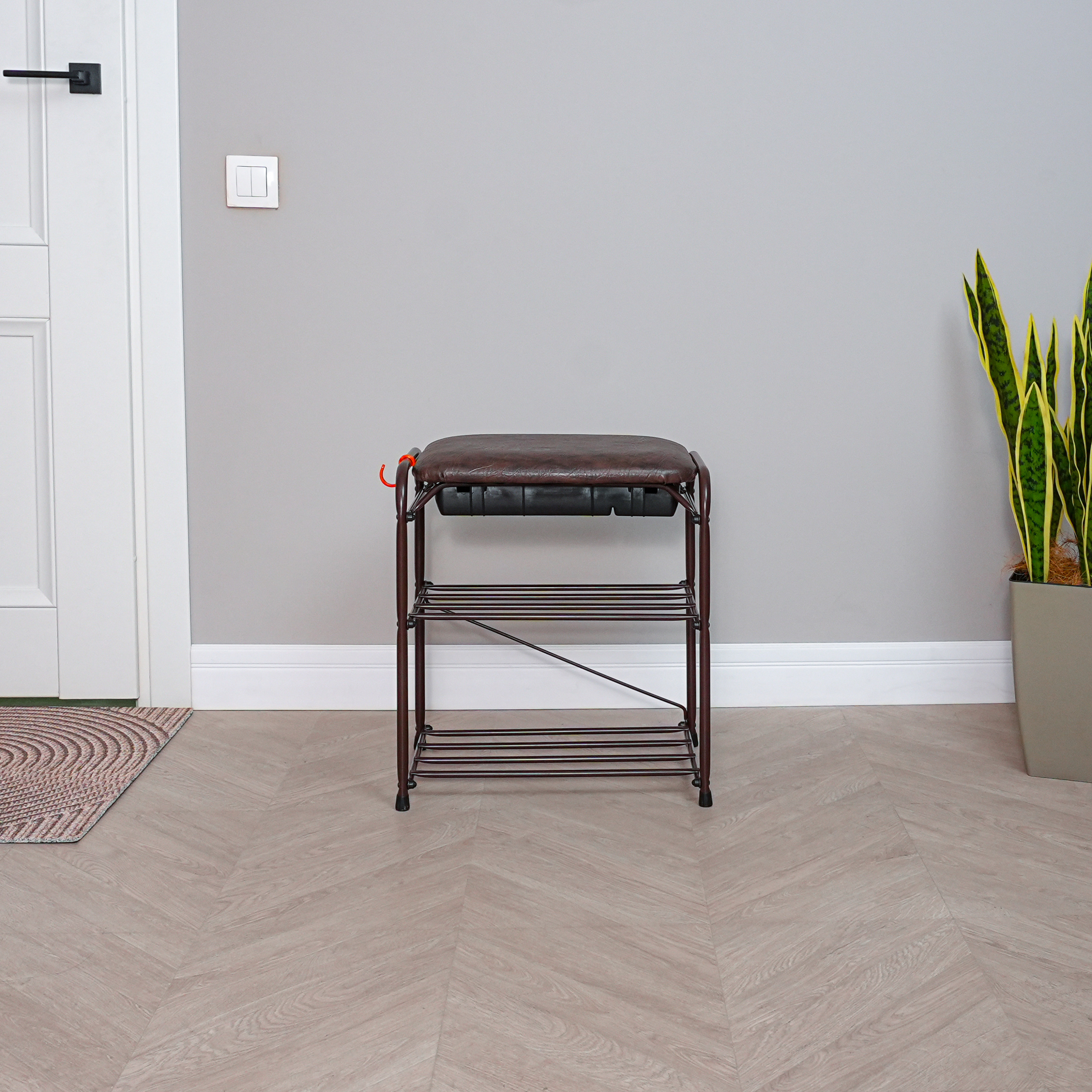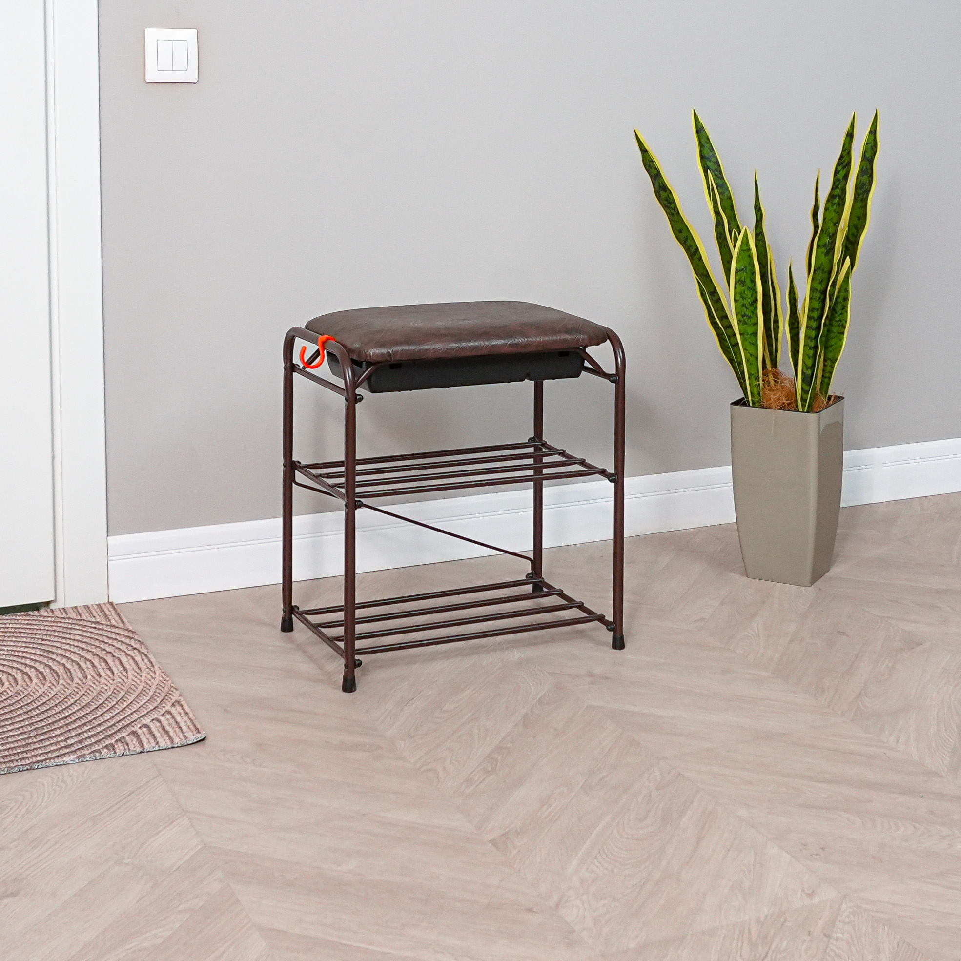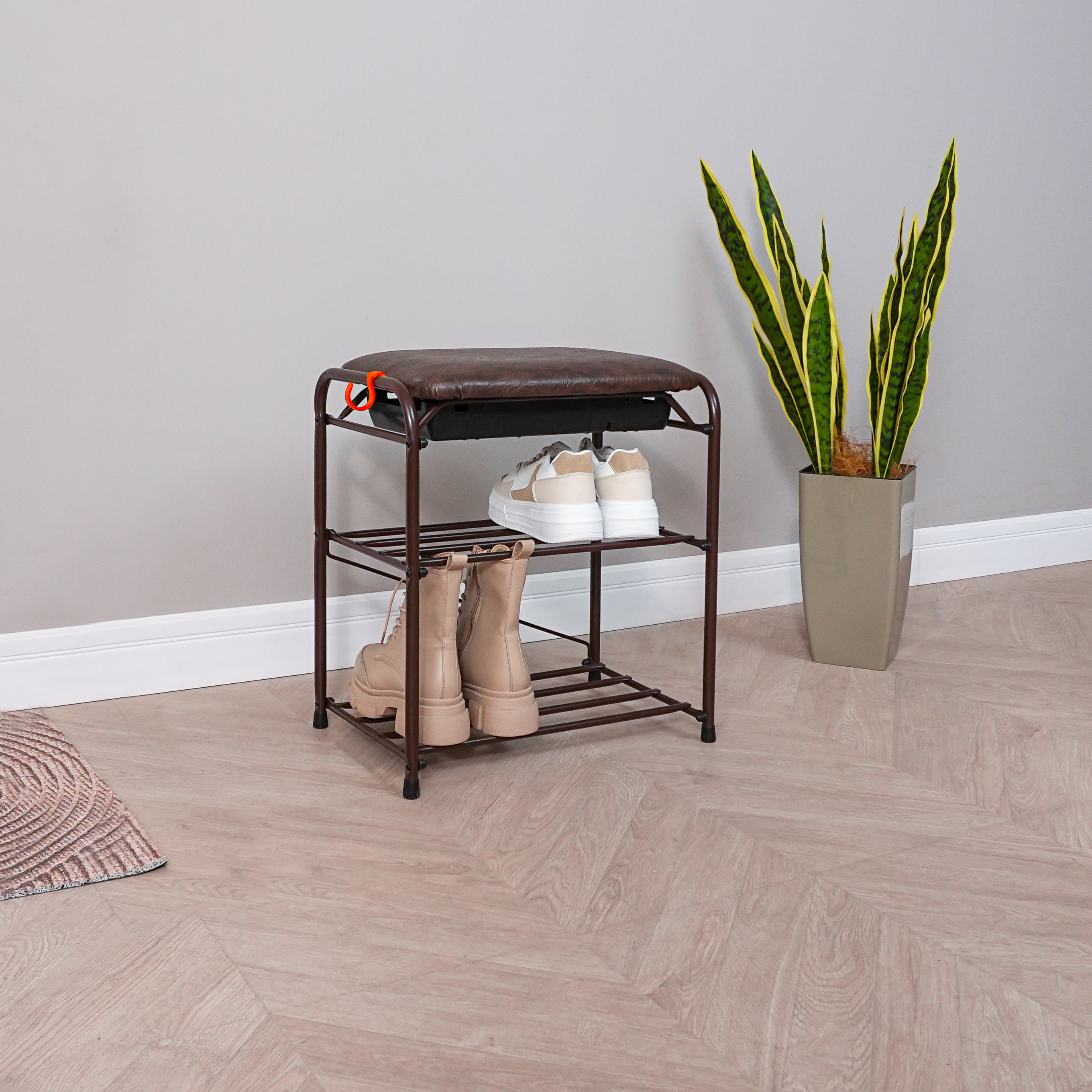 Подставка для обуви "Альфа 13" с сиденьем и ящиком (Коричневый)(3-х полочная,45см)