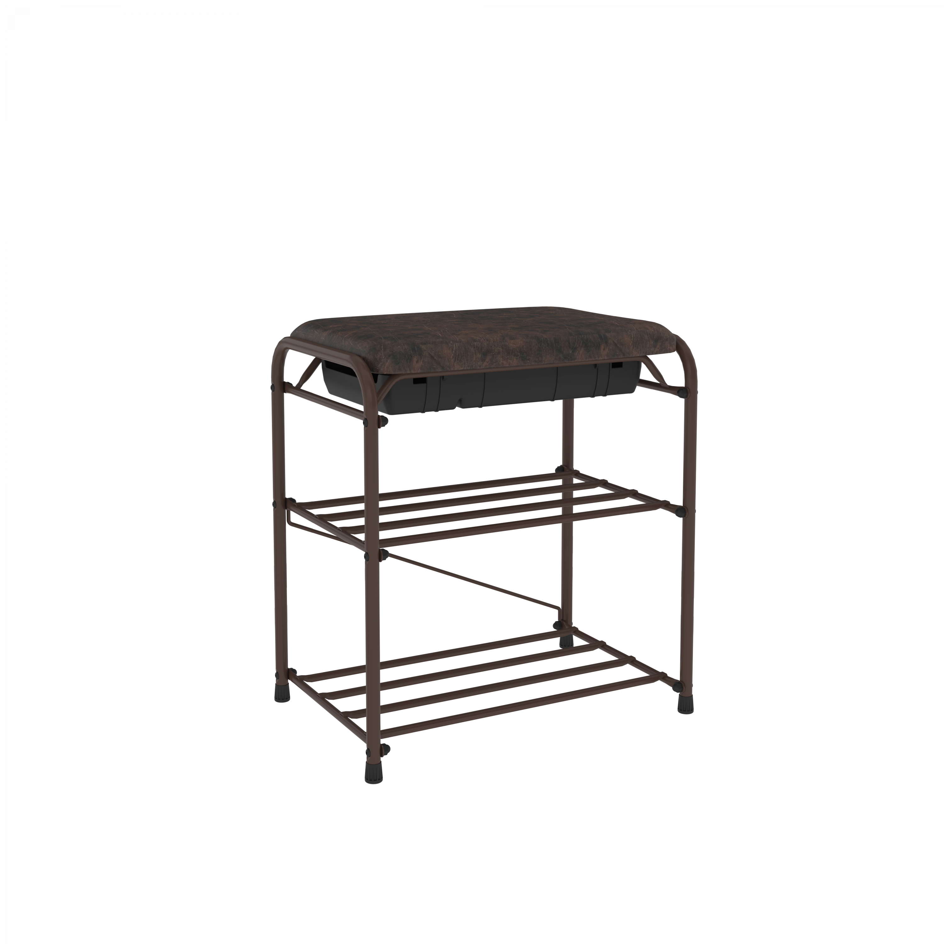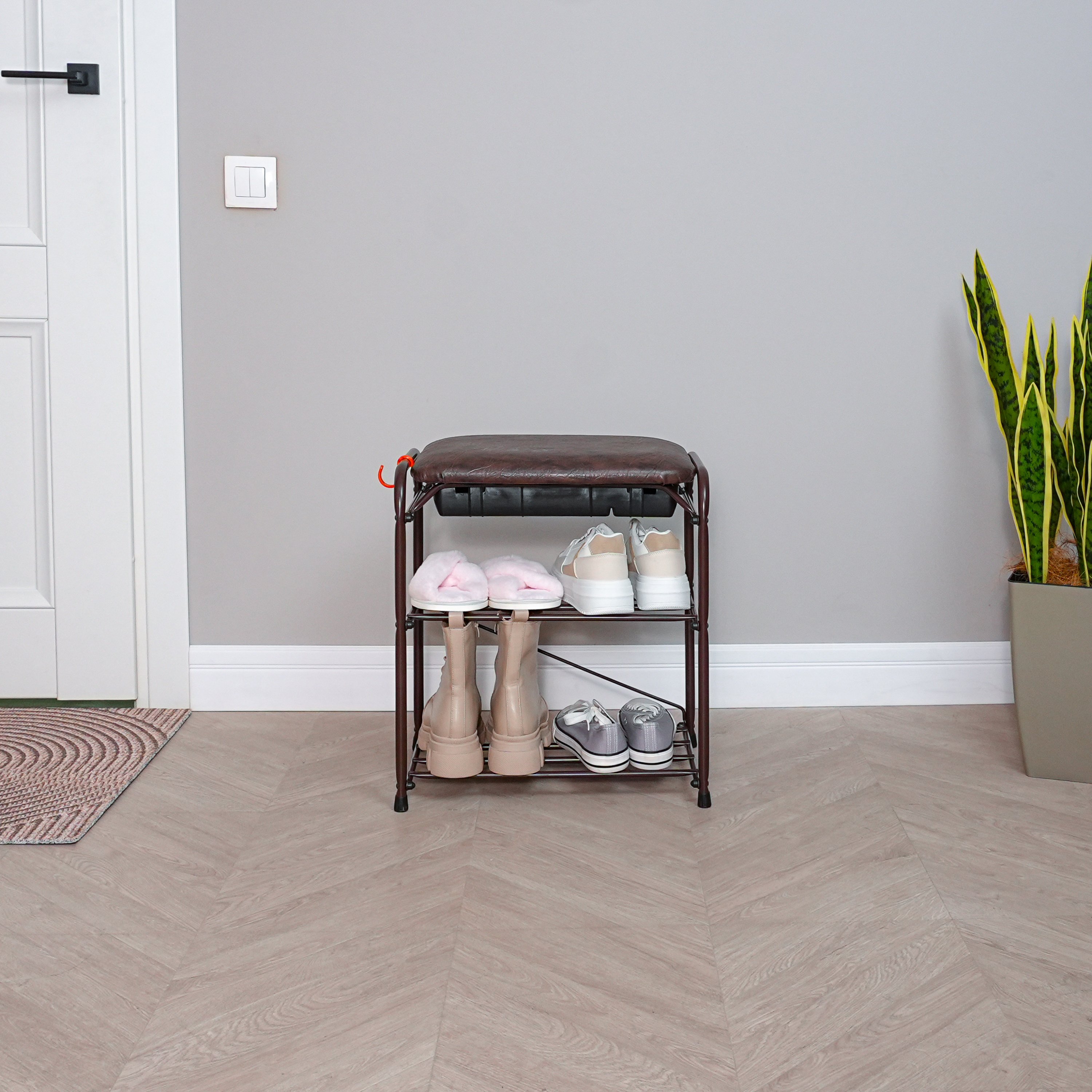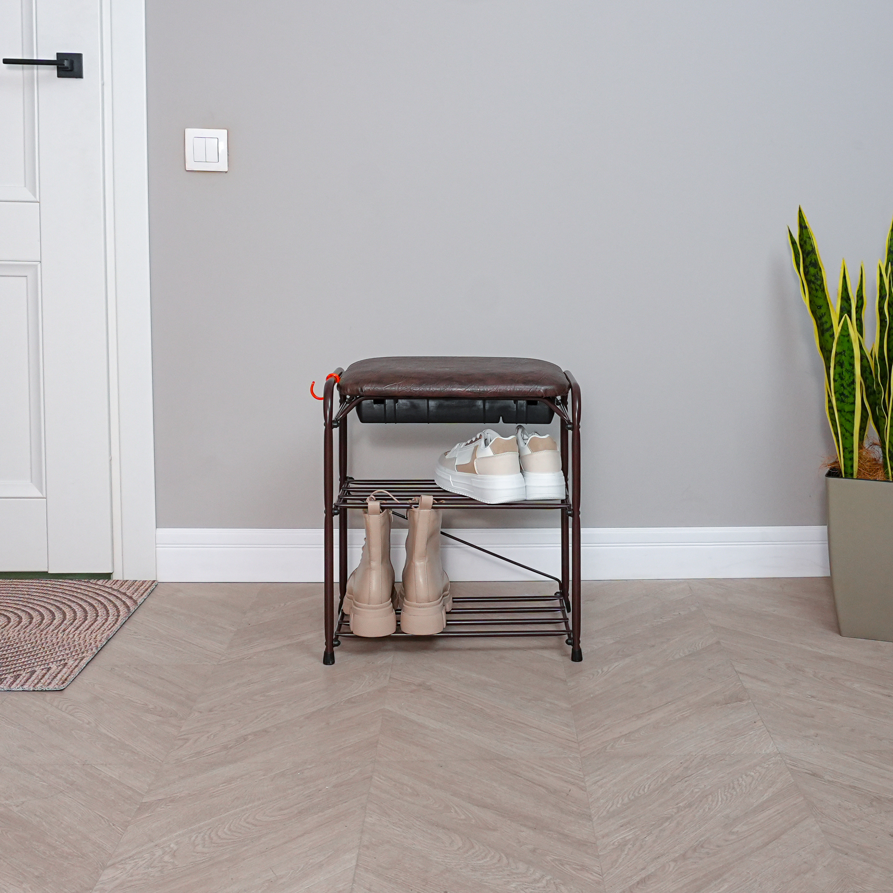 Подставка для обуви "Альфа 13" с сиденьем и ящиком (Коричневый)(3-х полочная,45см)