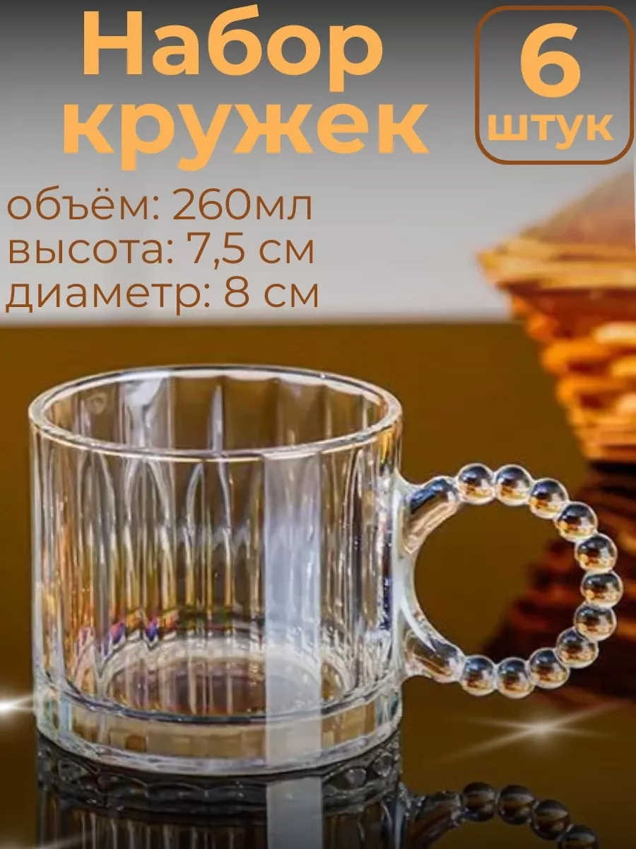 Стильный и практичный набор кружек - идеальное дополнение для вашего дома. Этот комплект из шести стеклянных кружек объемом 260 мл станет незаменимым элементом на вашей кухне. Изготовленные из высококачественного прозрачного стекла, они отличаются элегантным и современным дизайном, который прекрасно впишется в любой интерьер. Прозрачные бокалы позволяют полноценно наслаждаться цветом вашего любимого напитка, будь то крепкий черный кофе, ароматный чай или освежающий сок. Универсальность этого набора позволяет использовать кружки в самых разных ситуациях - от утреннего кофе перед работой до вечерних чаепитий с семьей. Если вы хотите произвести впечатление на гостей или просто порадовать себя красивой и удобной посудой каждый день, этот набор станет вашим лучшим выбором. Легко моющиеся и устойчивые к повреждениям кружки прослужат вам долгое время, радуя своей прозрачностью и простотой ухода. Независимо от того, используется ли кружка для чая или кофе, она станет верным спутником в повседневной жизни.