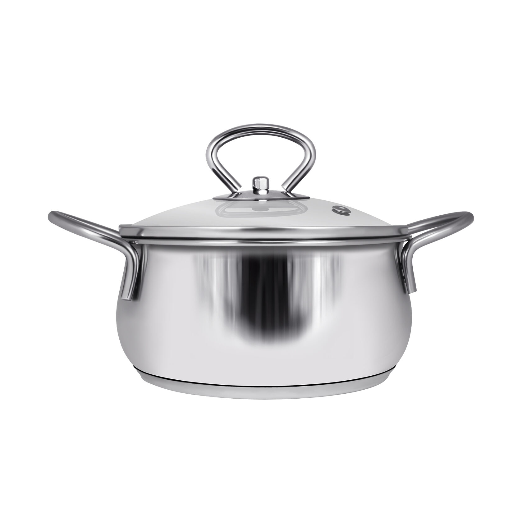 Кастрюля сферическая 2,8 л оснащена технологией трехслойного капсульного дна: алюминиевая пластина расположена между двух слоев нержавеющей стали. Стеклянная крышка с отверстием для пара плотно прилегает к корпусу.