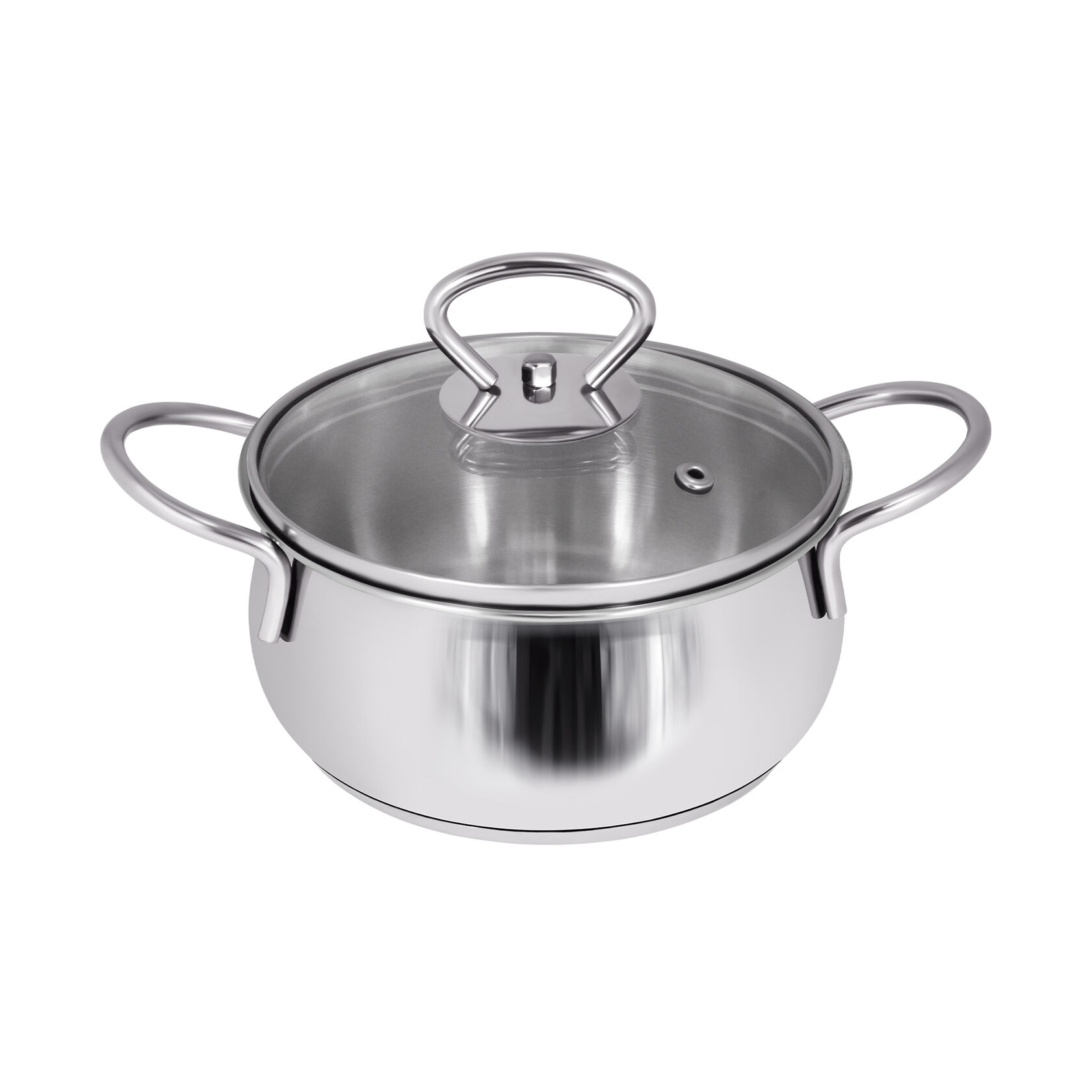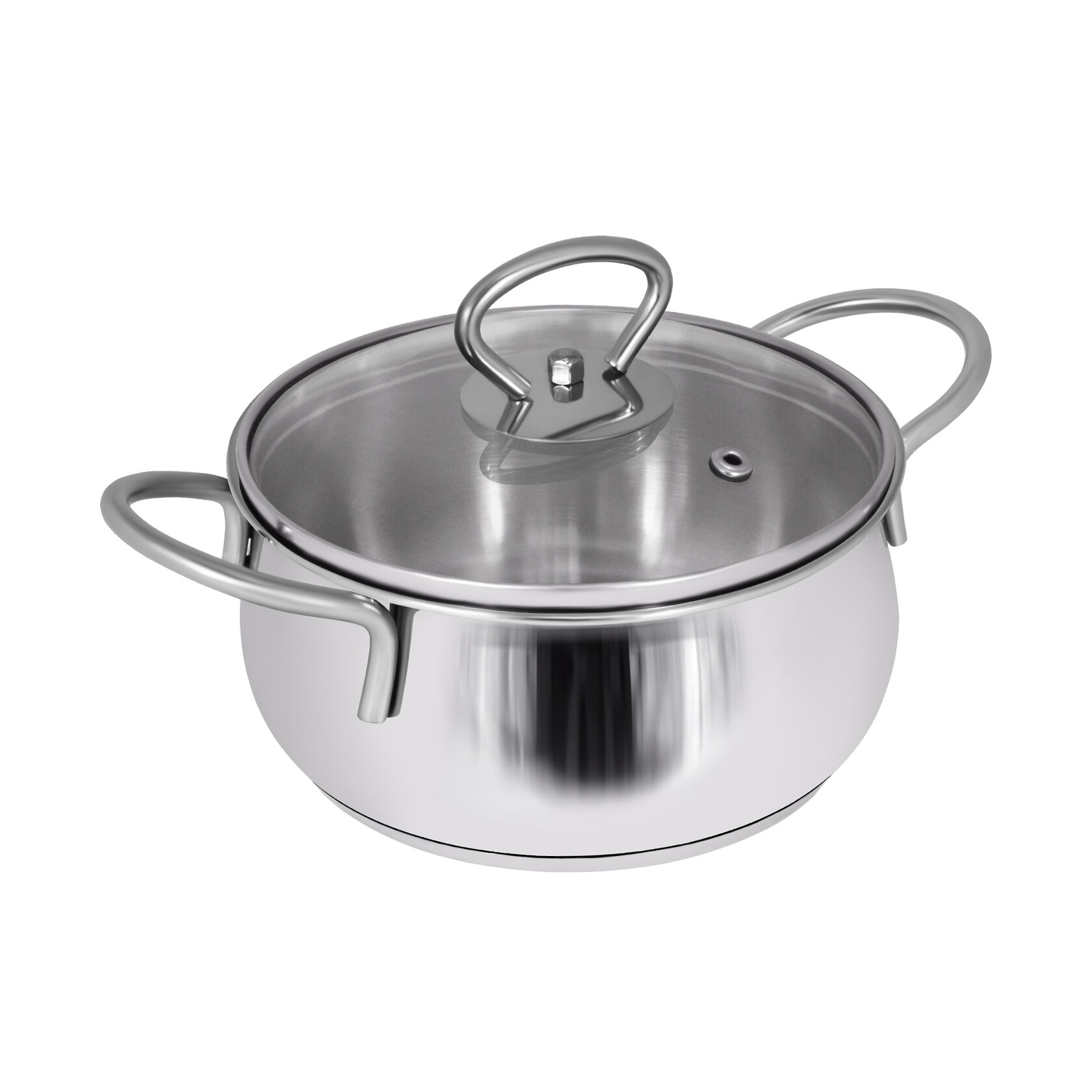Кастрюля сферическая 2,8 л оснащена технологией трехслойного капсульного дна: алюминиевая пластина расположена между двух слоев нержавеющей стали. Стеклянная крышка с отверстием для пара плотно прилегает к корпусу.