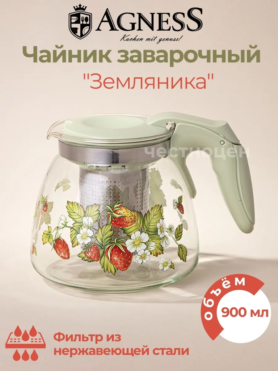 ЗАВАРОЧНЫЙ ЧАЙНИК AGNESS С ФИЛЬТРОМ "ЗЕМЛЯНИКА" 900 МЛ. 885-108