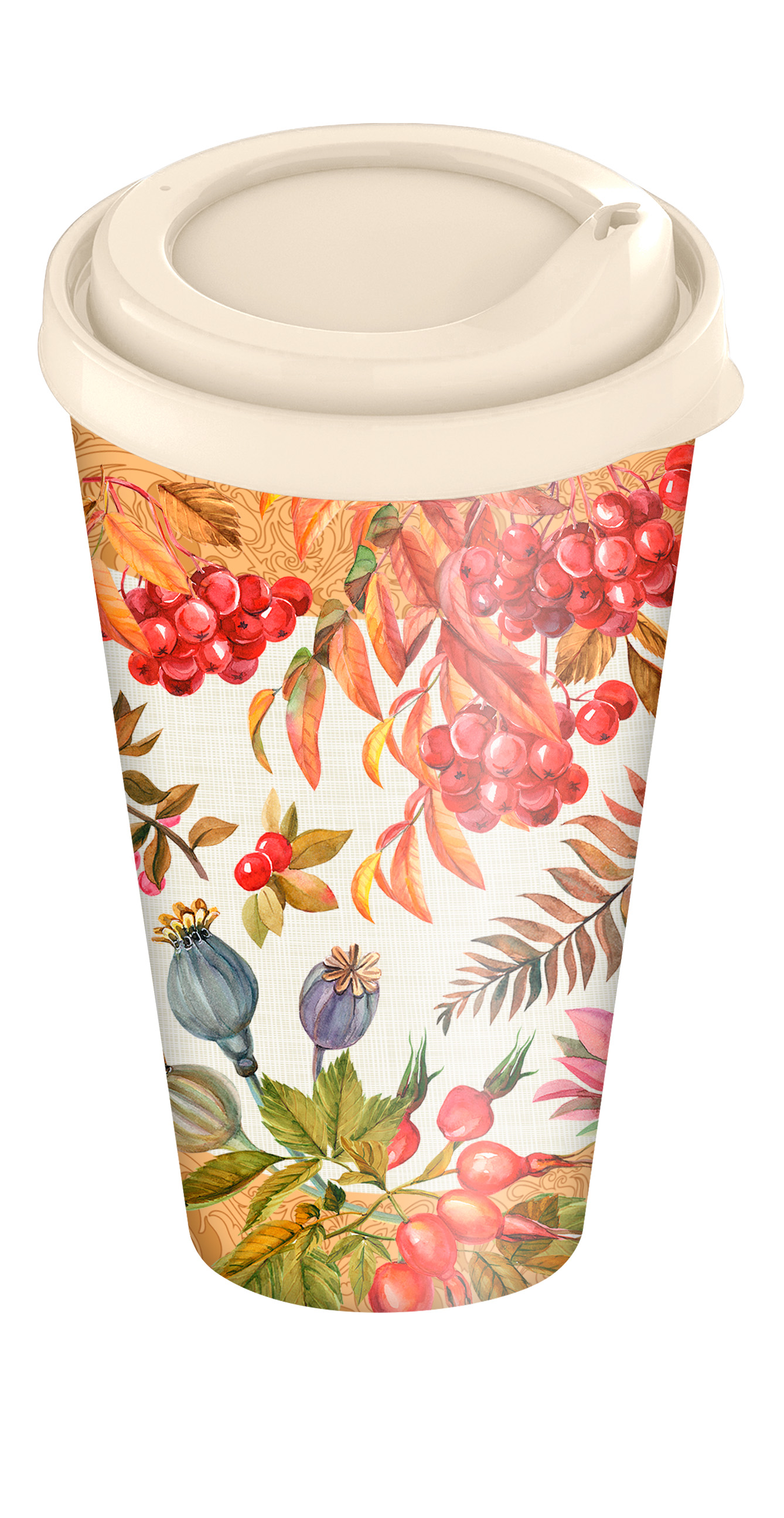 Стаканы 550 мл с крышкой имеют комфортный диаметр корпуса, удобно ложатся в руку и подходят к подстаканникам в машине. Крышка с носиком имеет язычок для удобного открывания. Использование многоразовых стаканов и кружек для напитков вместо одноразовых не только полезно для экологии, но и делает более приятным приём напитка. IML-декор наносится на весь корпус и вплавляется в изделие на этапе литья, поэтому он не стирается и долго радует глаз. Качественный полипропилен не содержит бисфенола А и подходит для СВЧ.