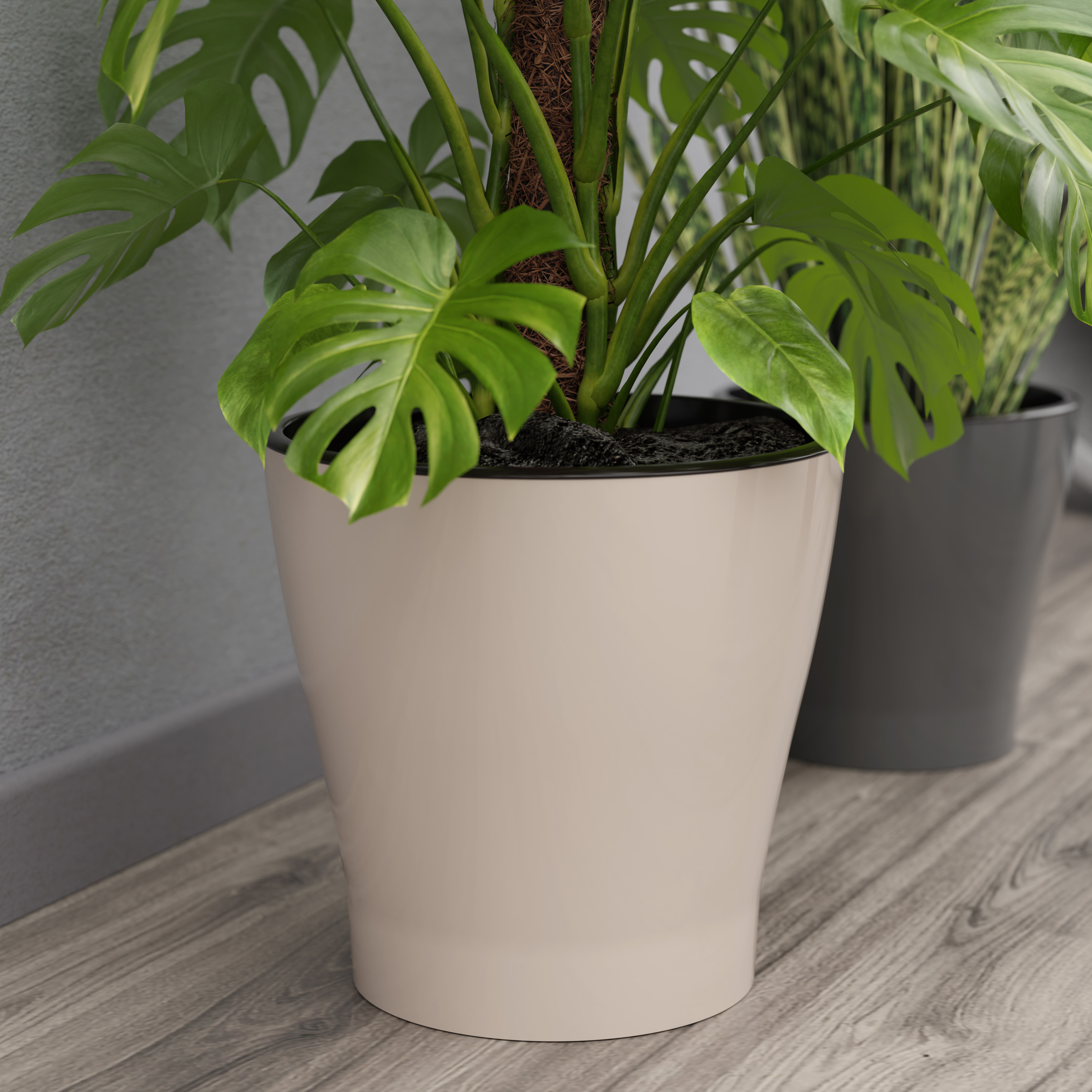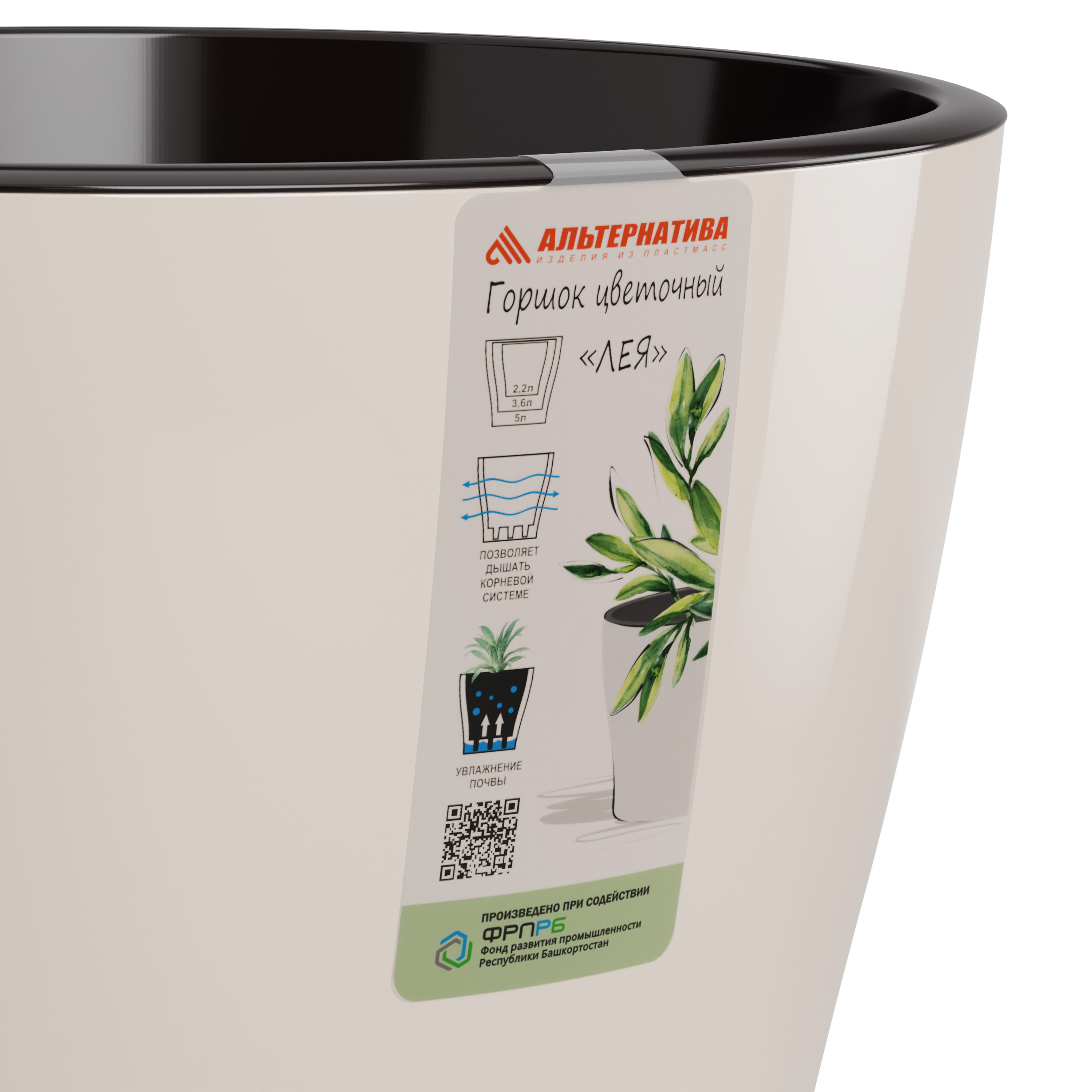 Горшок цветочный «Лея» предназначен для выращивания комнатных растений. Данный горшок станет идеальным дополнением к вашему интерьеру благодаря своему современному, минималистичному дизайну. Данный горшок обладает системой автополива. Благодаря данной системе вы сможете впредь не беспокоиться о проблемах перелива или высыхания растения. Цветочный горшок состоит из двух частей. Внутренняя вставка имеет отверстия и предотвращает перелив растений и загнивание корней. Внешняя часть защищает горшок от протекания, а также добавляет возможность удобно и быстро пересаживать растение.