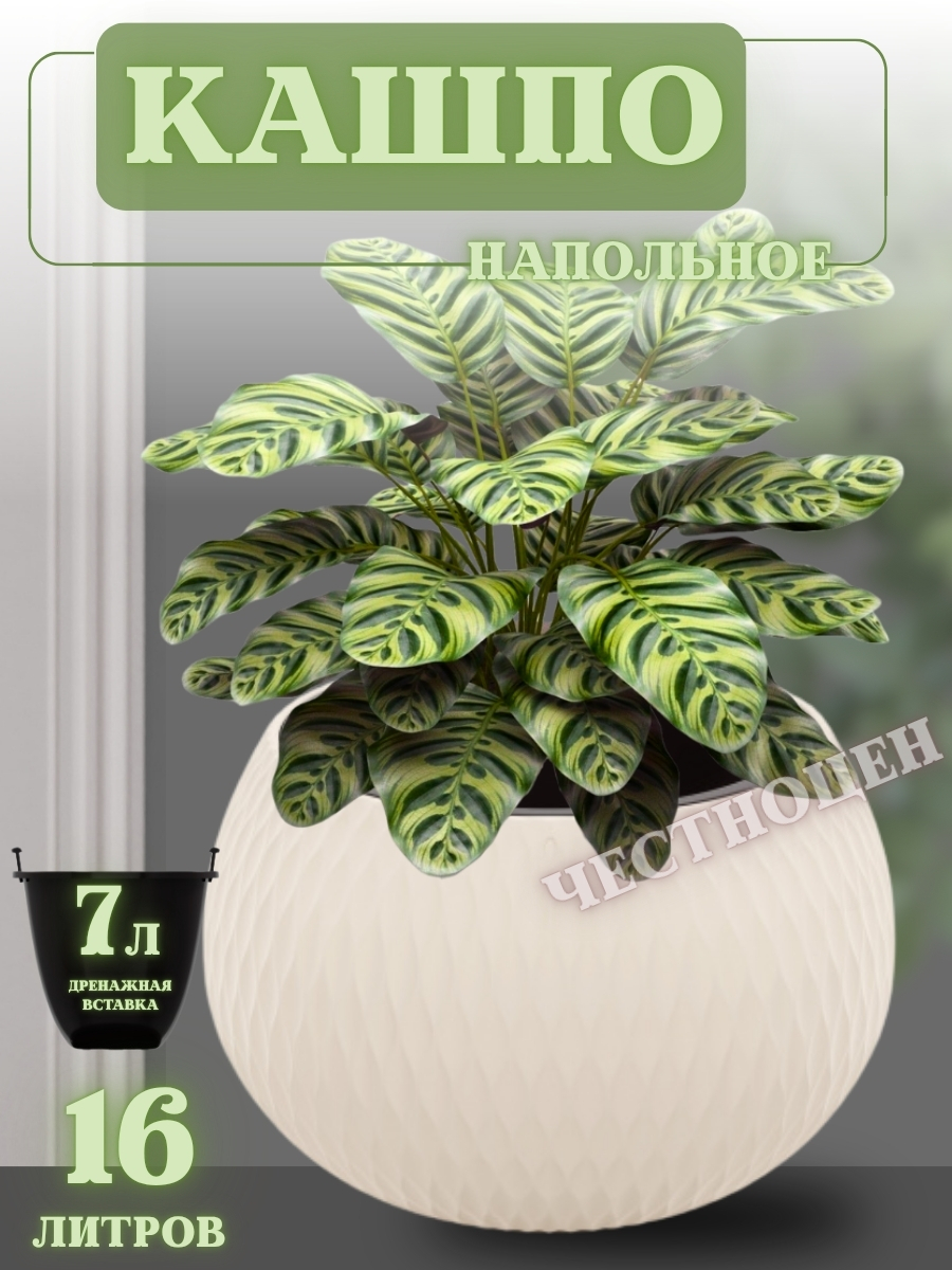 Кашпо «Жемчужина» предназначено для выращивания комнатных и уличных растений. Кашпо состоит из двух частей. Внутренняя вставка имеет отверстия и предотвращает перелив растений и загнивание корней. Внешняя часть защищает кашпо от протекания, а многогранная поверхность придает визуальную легкость и особенную эстетику изделию. Благодаря необычной сферической форме оно станет украшением любого интерьера.